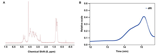 (A) The 1H-NMR (400 MHz, D2O) spectrum of LMF. (B) The molecular weight distribution of LMF.