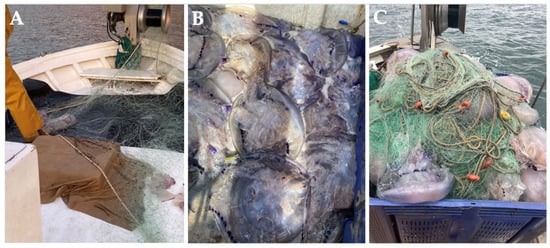 - Conley, K.R.; Sutherland, K.R. Commercial Fishers’ Perceptions of Jellyfish Interference in the Northern California Current. ICES J. Mar. Sci. 2015, 72, 1565–1575. [Google Scholar] [CrossRef]