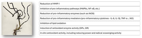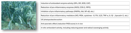 The potential antioxidant and anti-inflammatory mechanisms of action attributed to Z. marina extracts described in this review are overall schematically reported in Figure 6.