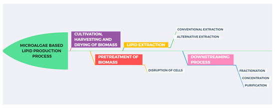 Nevertheless, many aspects of microalgae processing remain exploratory due to the unique characteristics of each microalgal species. It is therefore essential to develop a comprehensive process from cultivation and harvesting to the extraction of high-value compounds. Some microalgae possess rigid cell walls that hinder the extraction of bioactive compounds; thus, a pretreatment step is often necessary to increase accessibility and maximize compound recovery in subsequent extraction steps. Additionally, after compound extraction, purification, concentration, and fractionation steps may be required to obtain purer and more highly concentrated extracts [