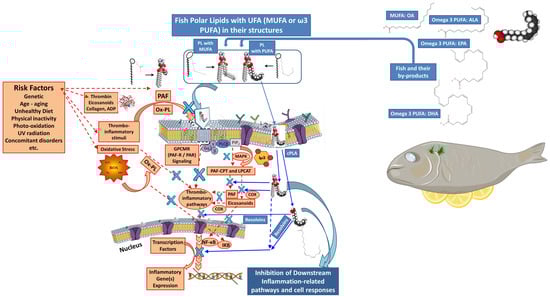 It has been acknowledged that marine species and their by-products are a remarkable source of novel bioactive metabolites. Among marine vertebrates, a wide range of fish species contribute to the generation of biomass by-products. These include both fatty and lean species such as salmon, mackerel, sardine, herring, cod, and tuna. Each species offers different types of bioactive molecules based on fat content, tissue type, and seasonal variation. For example, oily fish such as salmon and mackerel are rich in ω-3 fatty acids, while lean fish (e.g., cod) are excellent sources of high-purity collagen and gelatin [,]. Although this review focuses on bioactive use in cosmetics, it is worth noting that fish by-products are also widely used in animal feed, fertilizers, and biomedical applications. However, recently, scientific focus has shifted toward the identification and isolation of high-value bioactives with skin-protective, anti-aging, and antioxidant effects [,].
