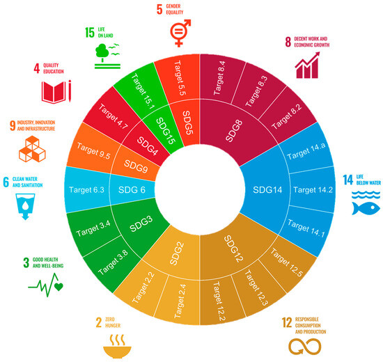 These initiatives also align with SDG 4 (quality education), through the promotion of lifelong learning opportunities through capacity building, skills development (Target 4.4) [44], specifically tailored to the blue economy sector [63] and in the promotion of education for sustainable development (Target 4.7), equipping individuals with the knowledge and skills needed to support sustainability goals.