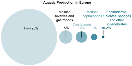 Proportion of total aquaculture and capture production of aquatic species by animal group in Europe. Data obtained from the Food and Agriculture Organization of the United Nations [69].
