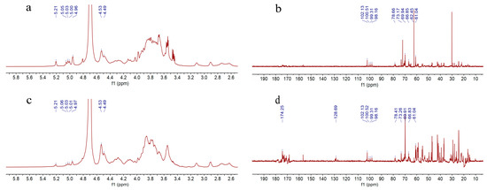 The 1H NMR and 13C NMR spectra of the two purified fractions XL-1-D and XMRS-1-D. ((a), the 1H NMR of XL-1-D; (b), the 13C NMR of XL-1-D; (c), the 1H NMR of XMRS-1-D; (d), the 13C NMR of XMRS-1-D).