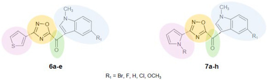 3.1.7. General Procedure for the Synthesis of 1,2,4-Oxadiazol Based-Topsentins 6a–e and 7a–h
