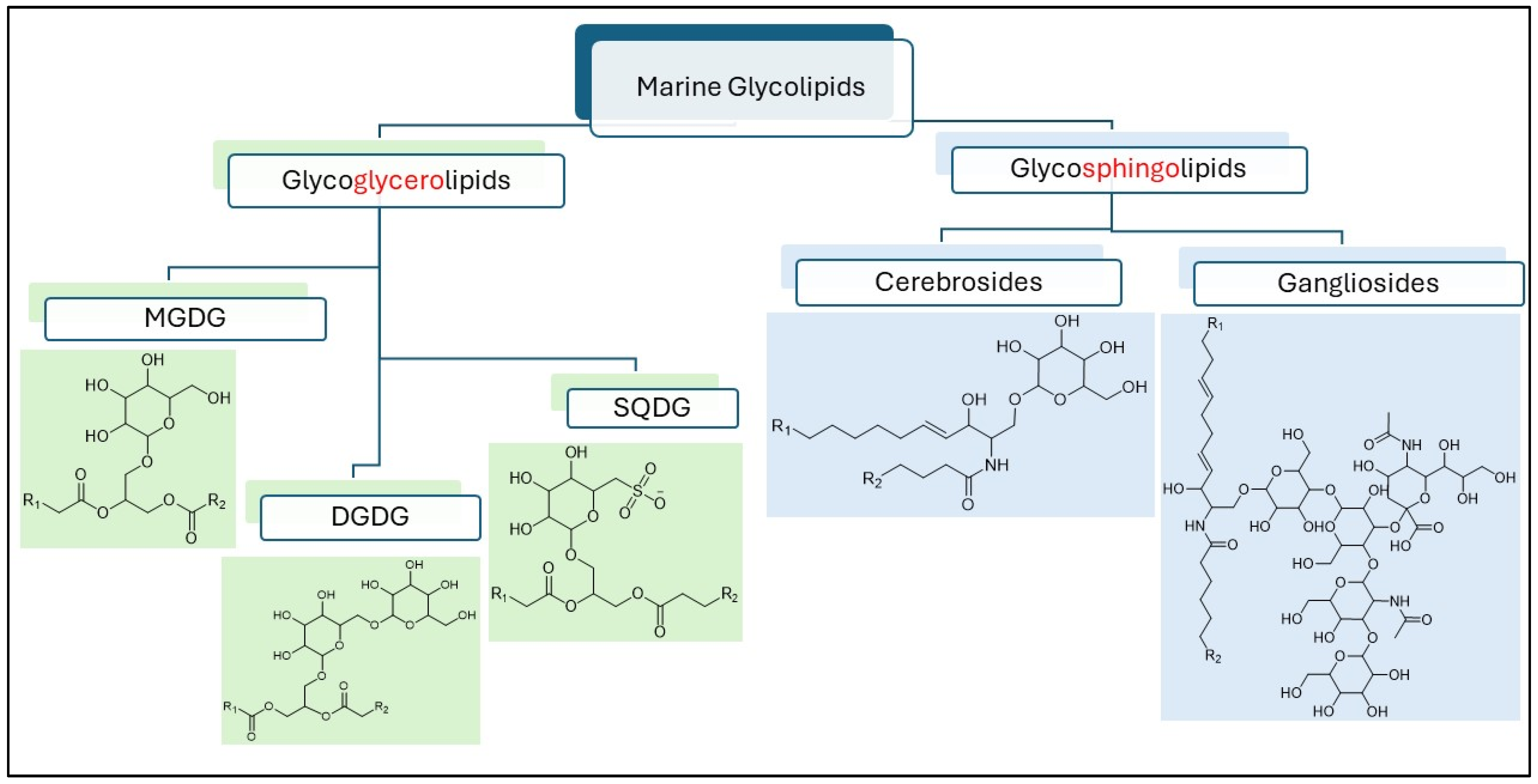 - Guo, S.-S.; Wang, Z.-G. Glyceroglycolipids in marine algae: A review of their pharmacological activity. Front. Pharmacol. 2022, 13, 1008797. [Google Scholar] [CrossRef] [PubMed]