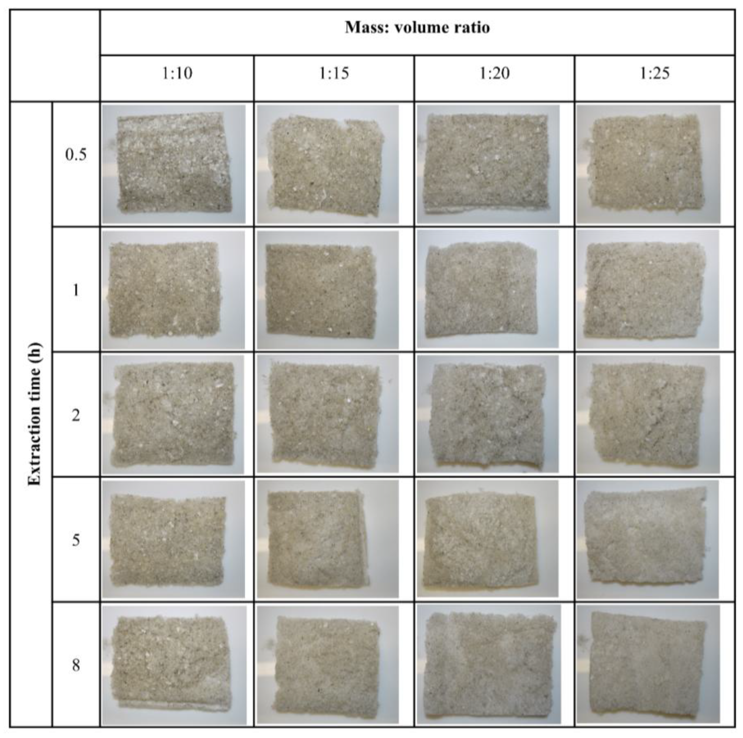 4.3. Experimental Protocol to Select the Suitable Extraction Time and Mass to Volume Ratio