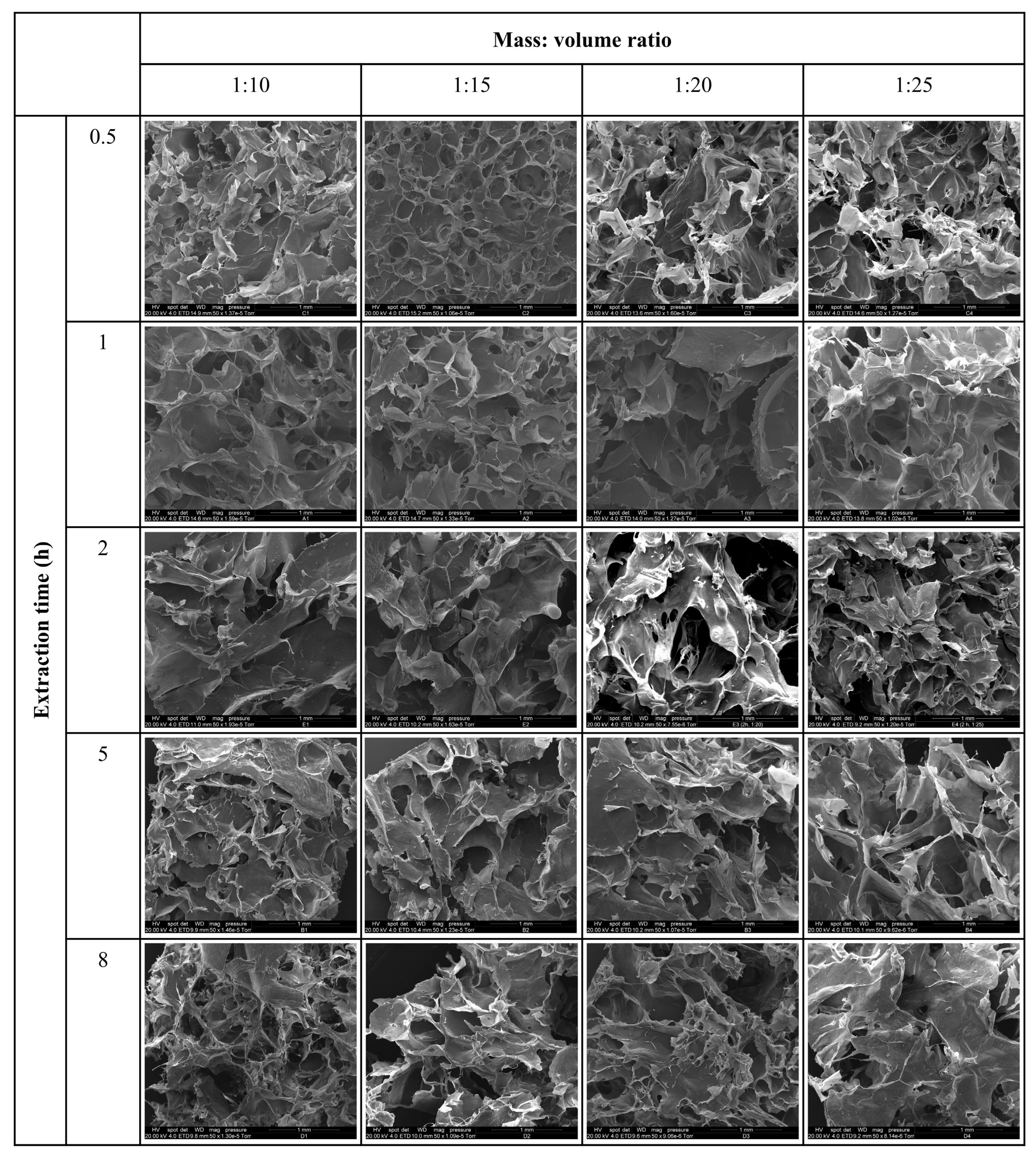 3.2. Morphology and Microstructure of Collagen