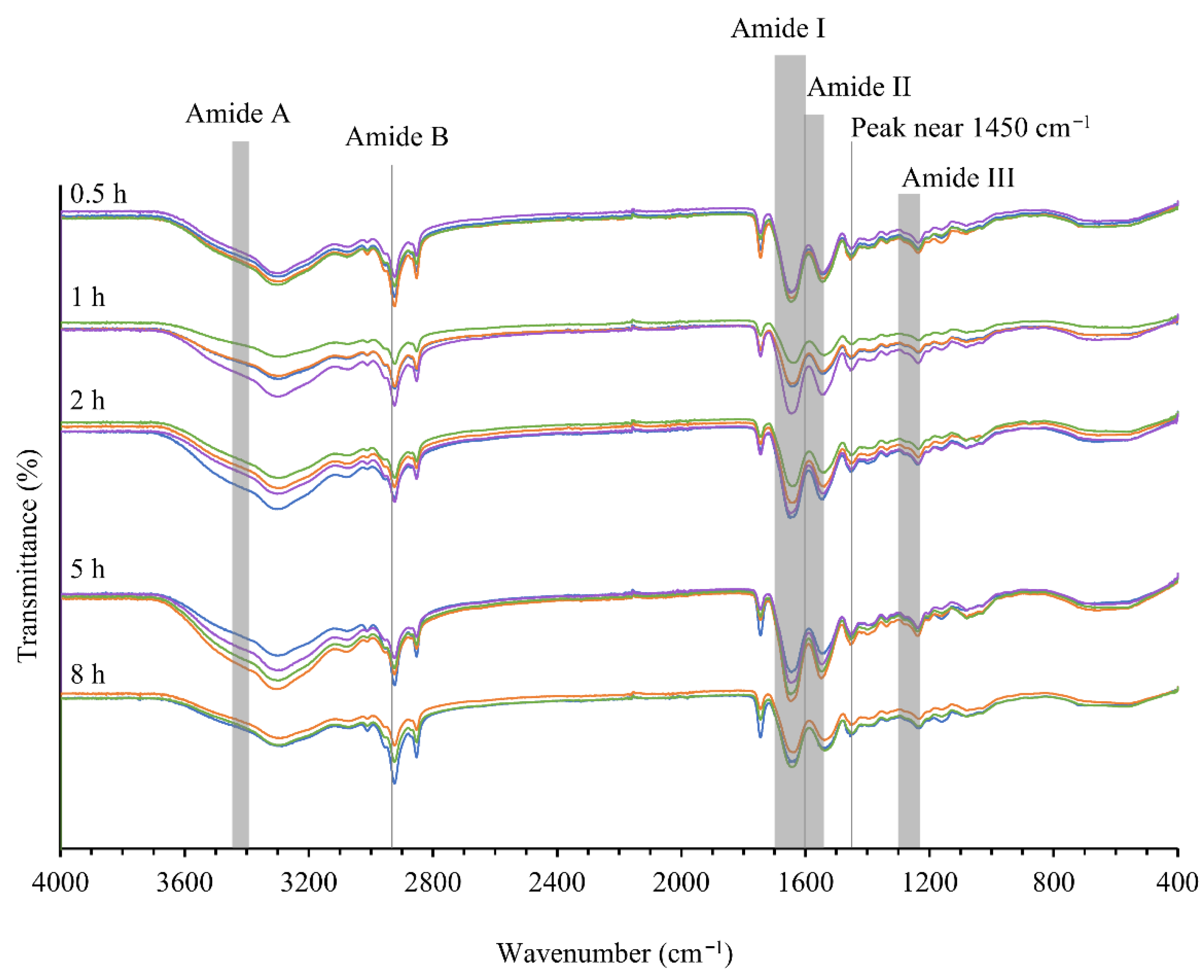 | Amide B | near 2920 | 1: 10 | 2924 (±1) | 2923 (±1) | 2924 (±1) | 2924 (±1) | 2924 (±1) |