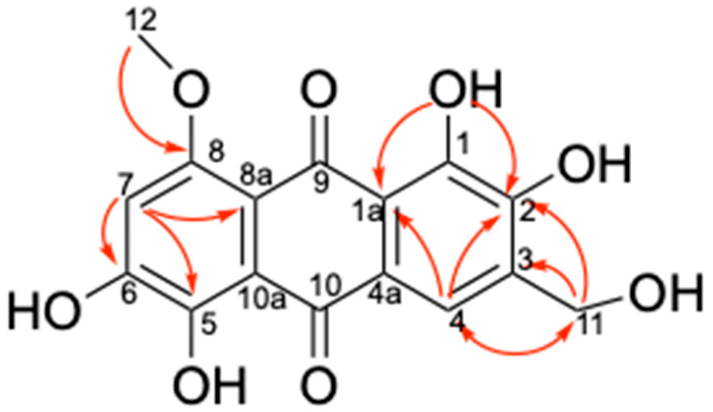 | 6 | - | 155.5 | 1-OH | 13.97 (1H, brs) | - |