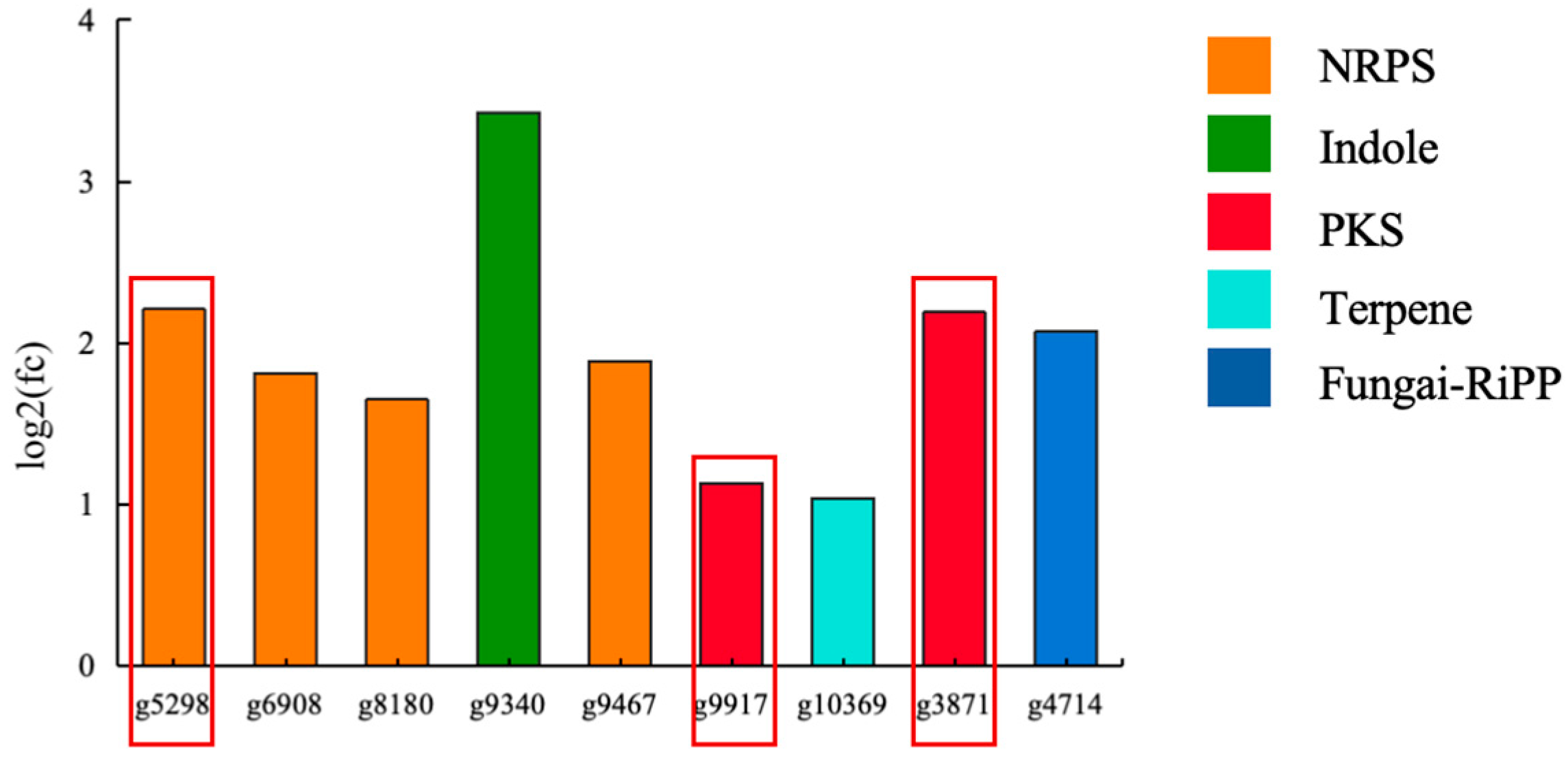 - Zhang, Y.; Yu, W.; Lu, Y.; Wu, Y.; Ouyang, Z.; Tu, Y.; He, B. Epigenetic regulation of fungal secondary metabolism. J. Fungi 2024, 10, 648. [Google Scholar] [CrossRef]