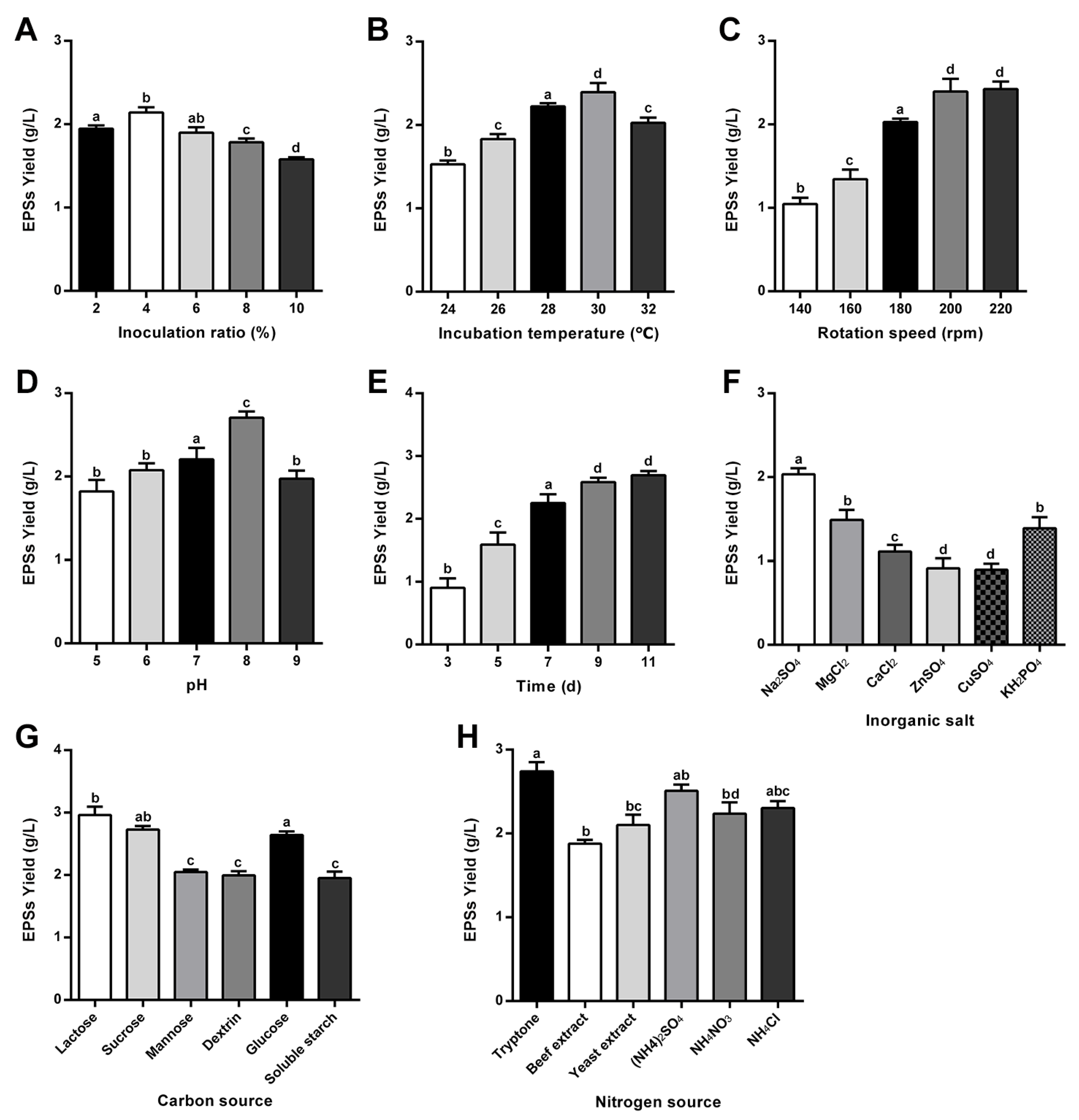 3.3. Optimization of EPS Fermentation Conditions