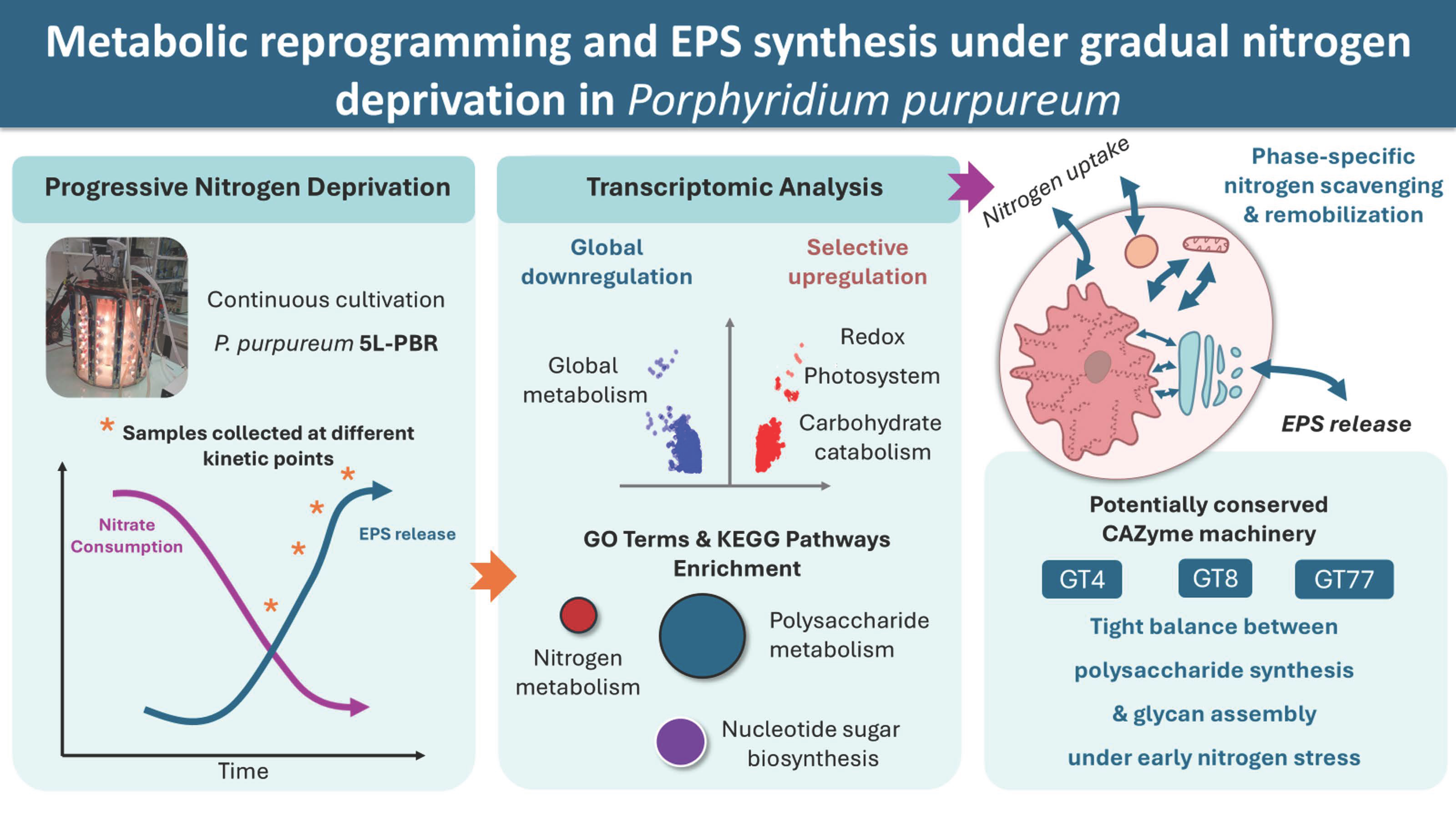 APA StyleGuerreiro, M., Emmanuel, C., Dupuits, C., Gardarin, C., Mouzeyar, S., Varela, J., Roche, J., & Laroche, C. (2026). Transcriptomic Insights into Metabolic Reprogramming and Exopolysaccharide Synthesis in Porphyridium purpureum Under Gradual Nitrogen Deprivation. Marine Drugs, 24(1), 40. https://doi.org/10.3390/md24010040