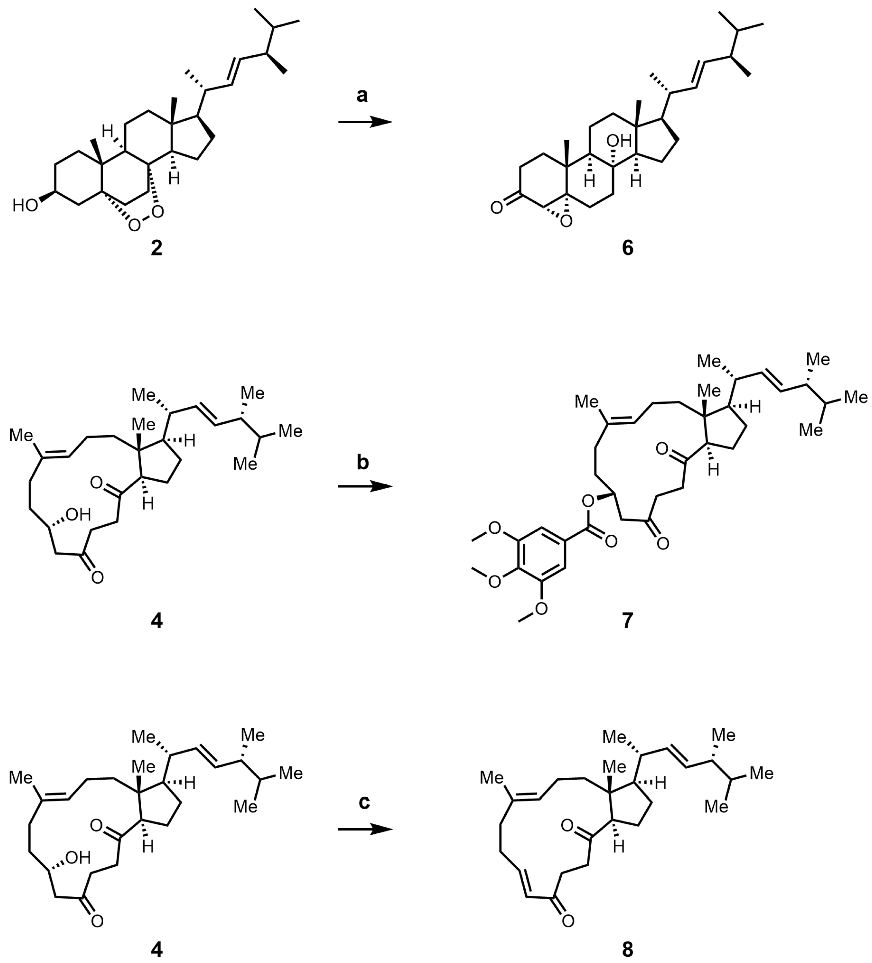 - Lu, Z.-H.; Zhang, X.; Guo, Z.-C.; Chen, Y.; Mu, T.; Li, A. Total Synthesis of Aplysiasecosterol A. J. Am. Chem. Soc. 2018, 140, 9211–9218. [Google Scholar] [CrossRef] [PubMed]
