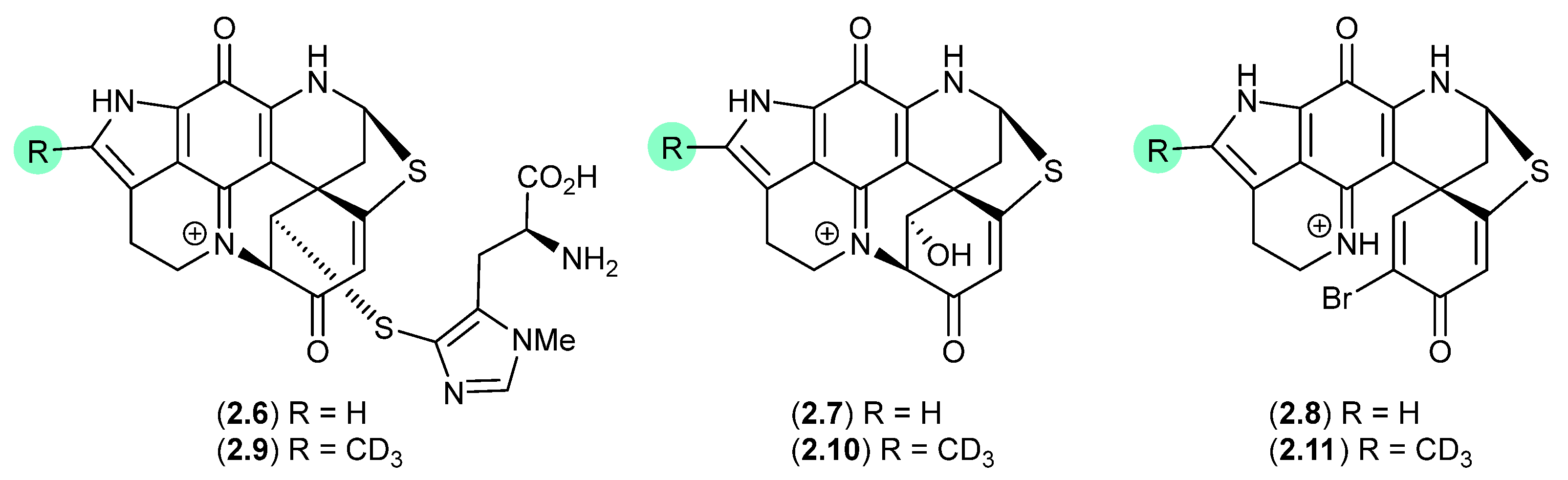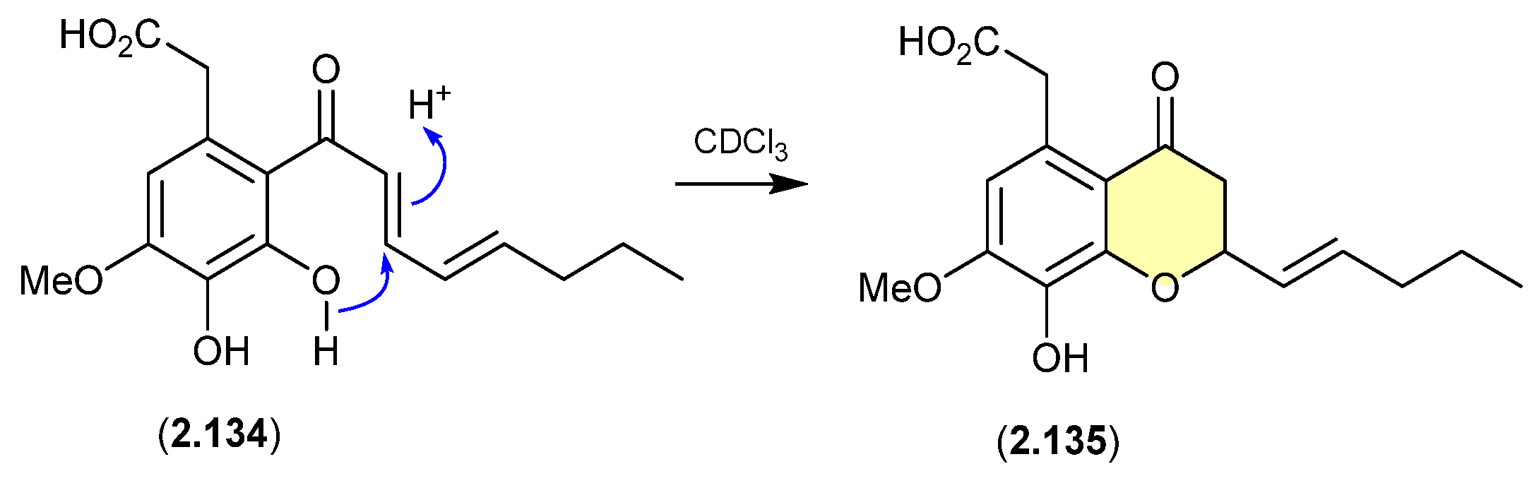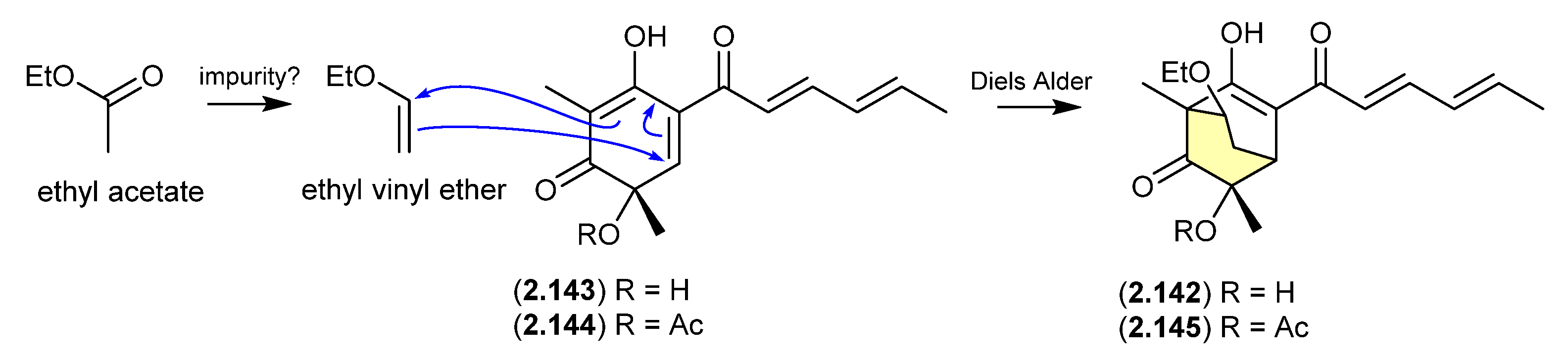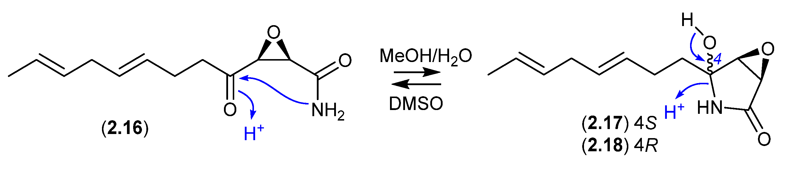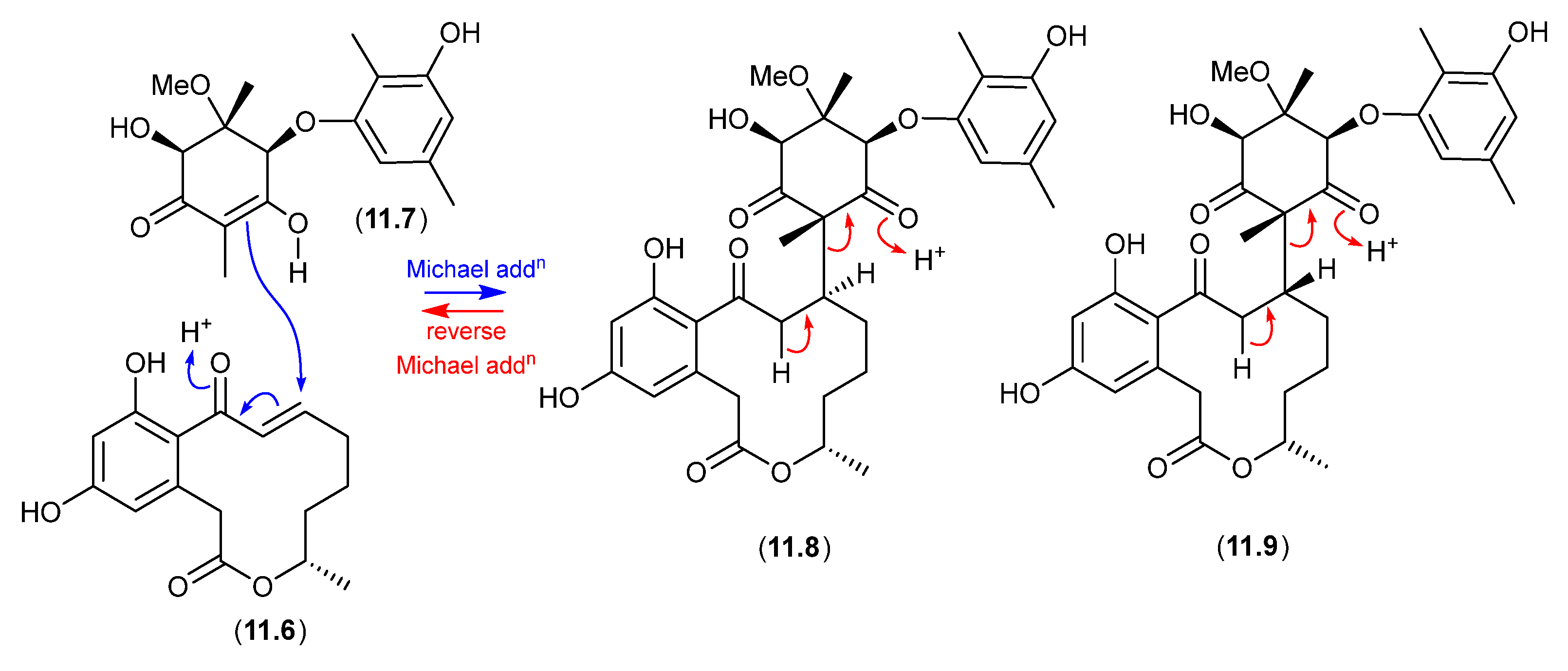 11.7, as they were detected in the crude unfractionated culture extract it was concluded they were natural products—potentially formed in situ by a non-enzymatic Michael addition. More intriguing, while