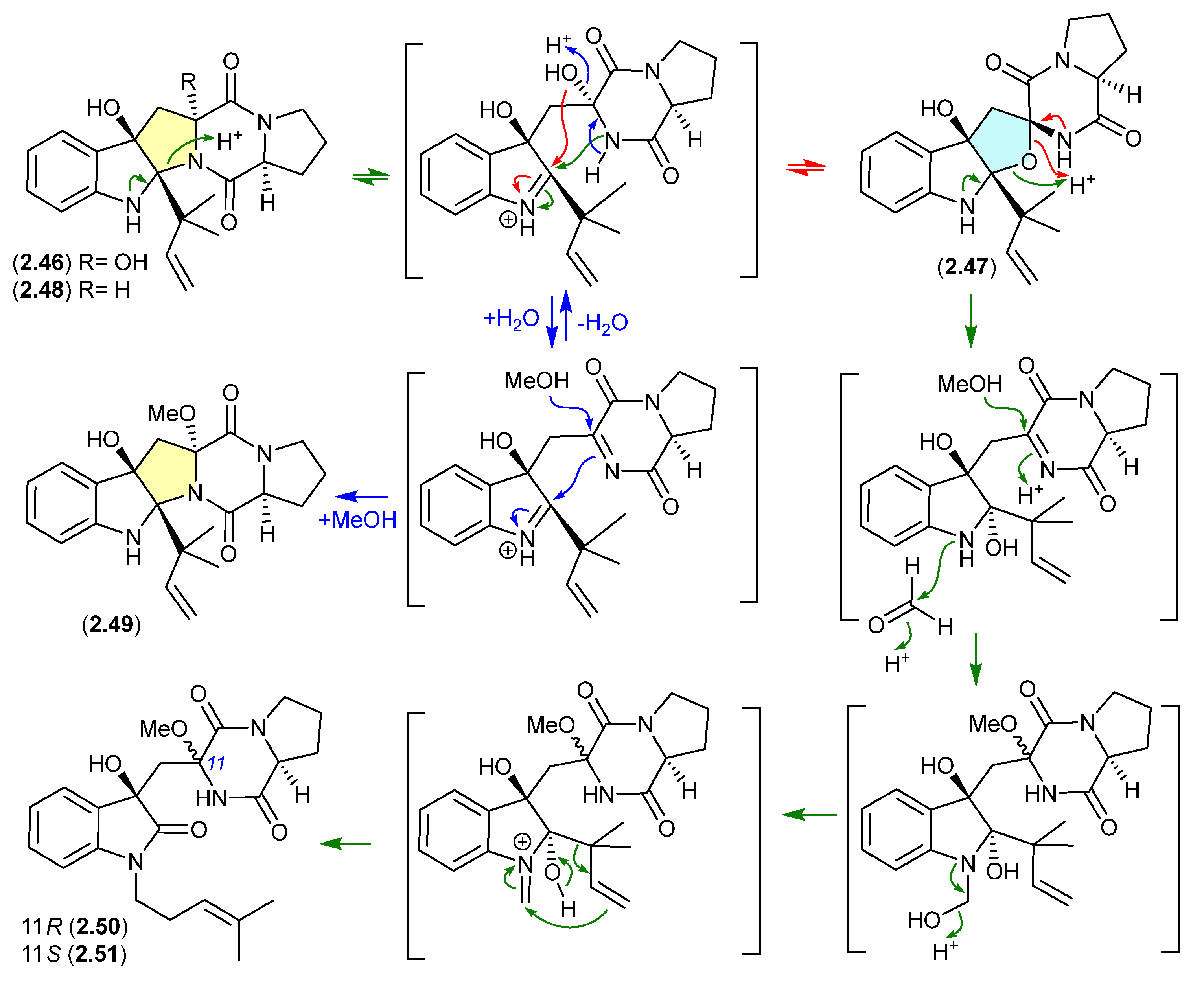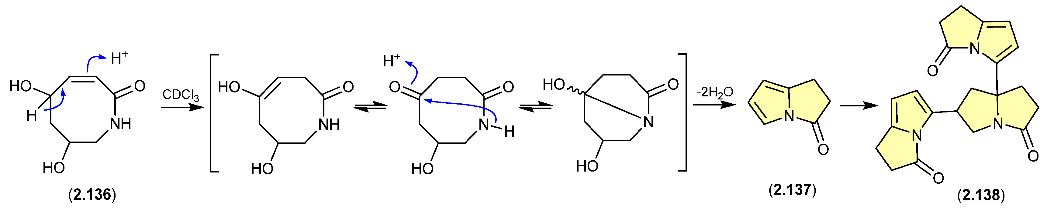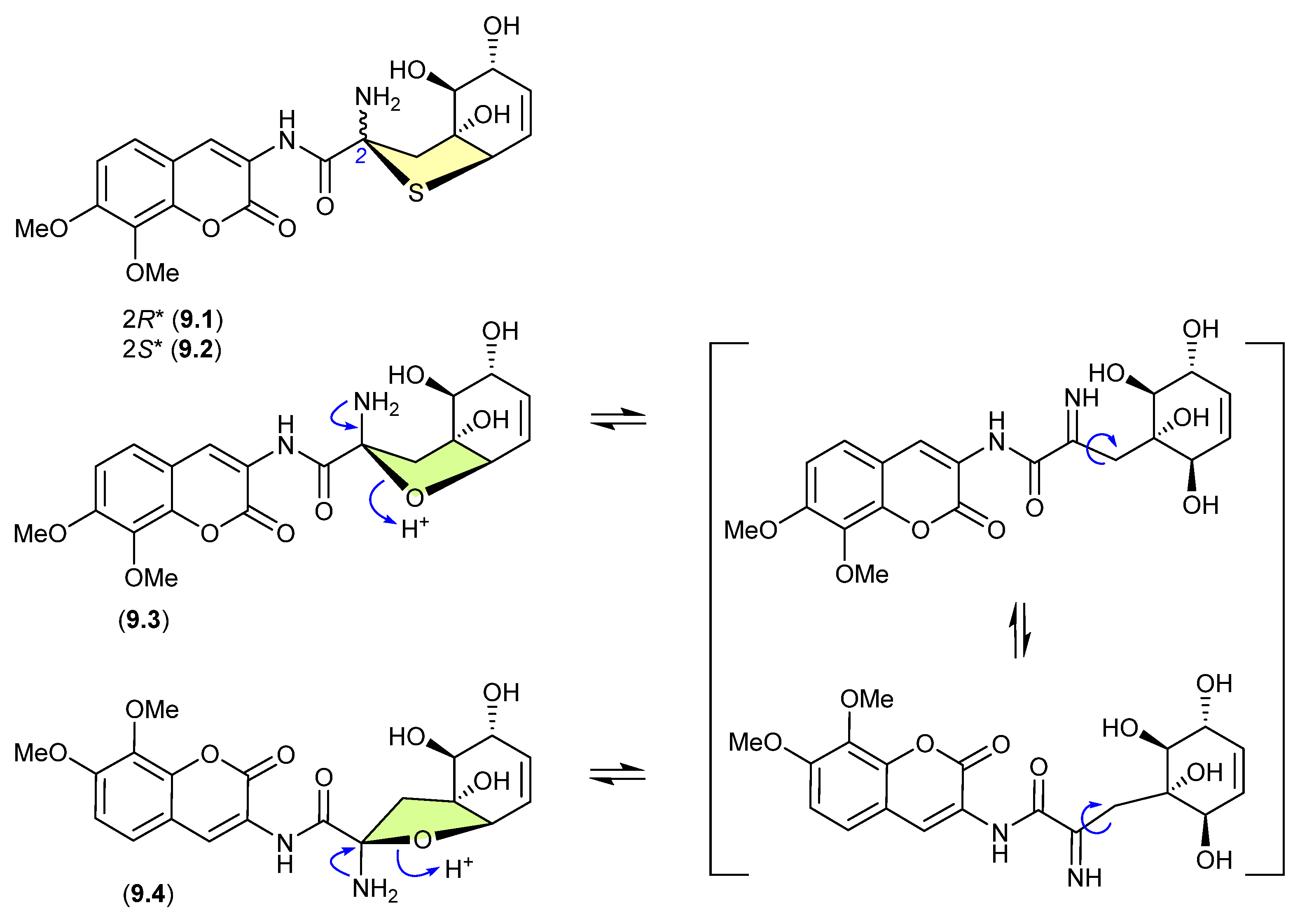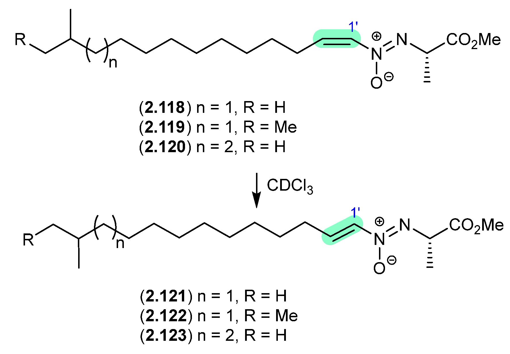 11.7, as they were detected in the crude unfractionated culture extract it was concluded they were natural products—potentially formed in situ by a non-enzymatic Michael addition. More intriguing, while