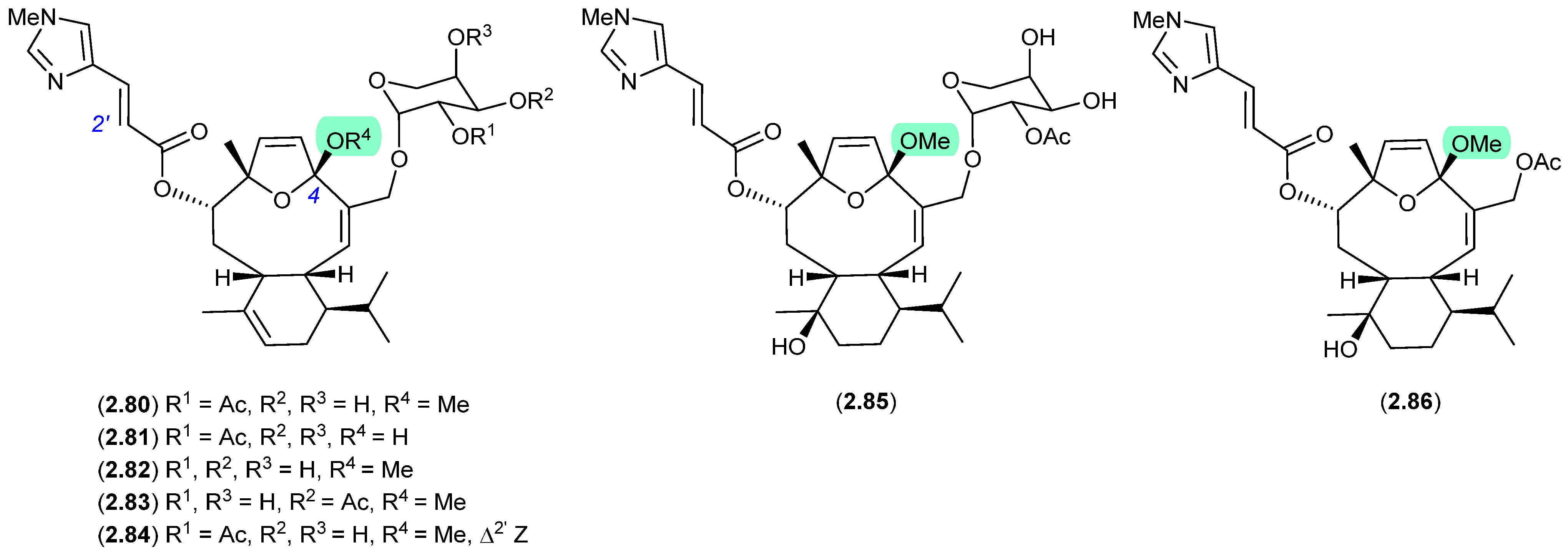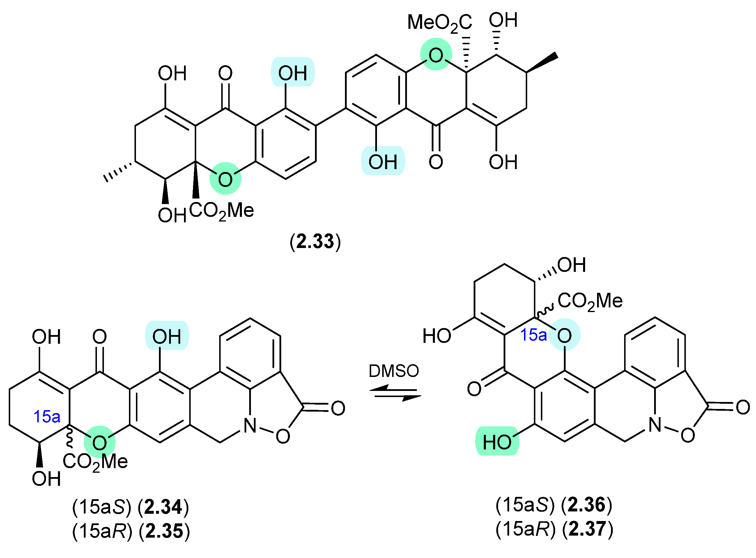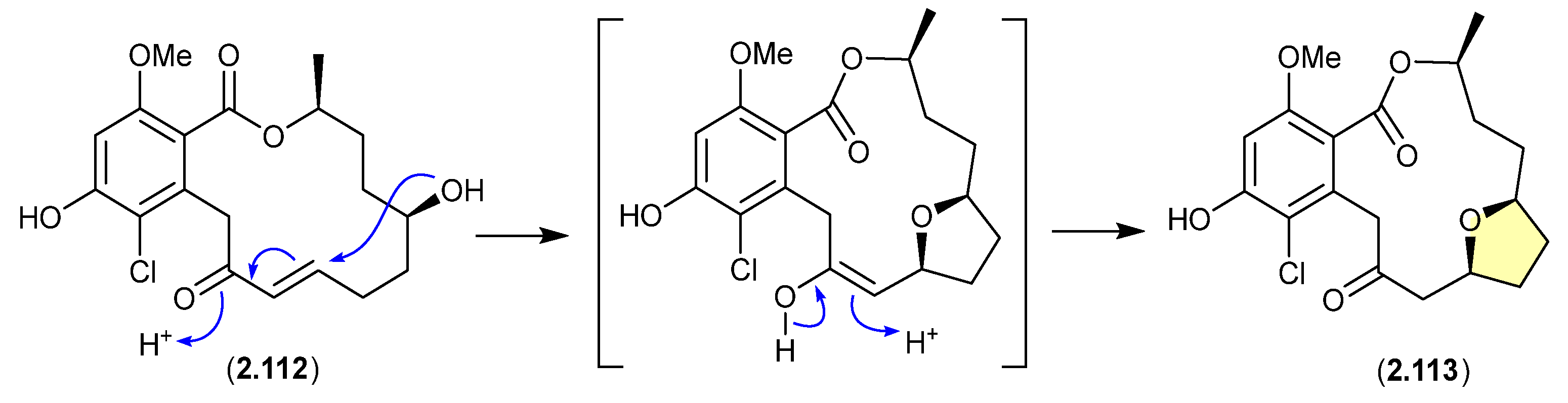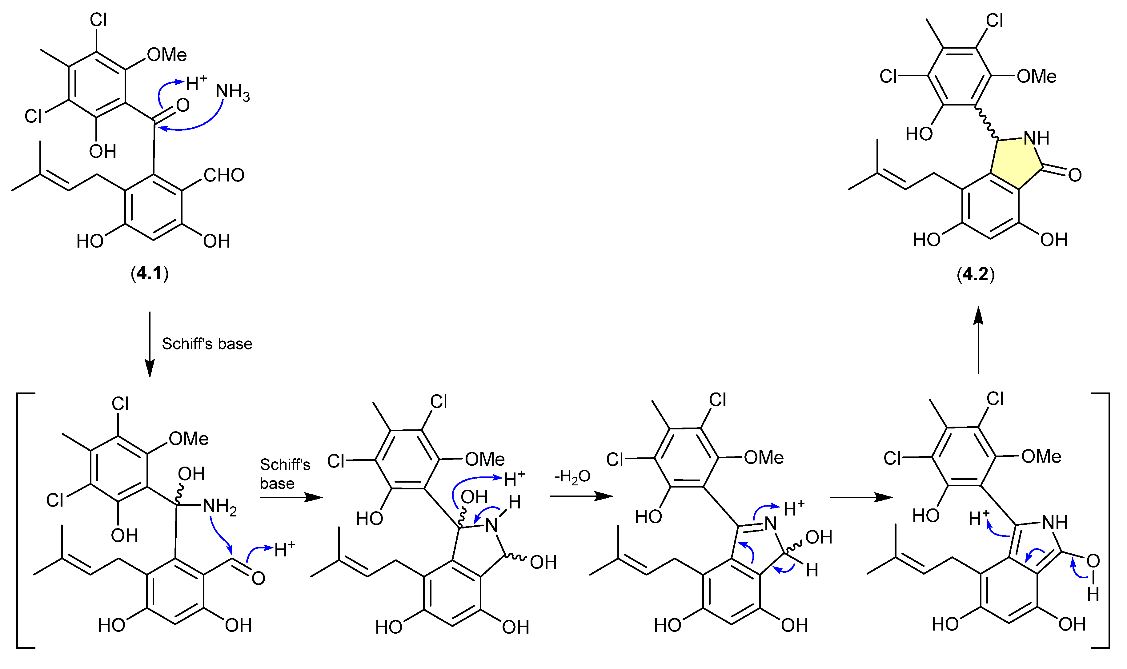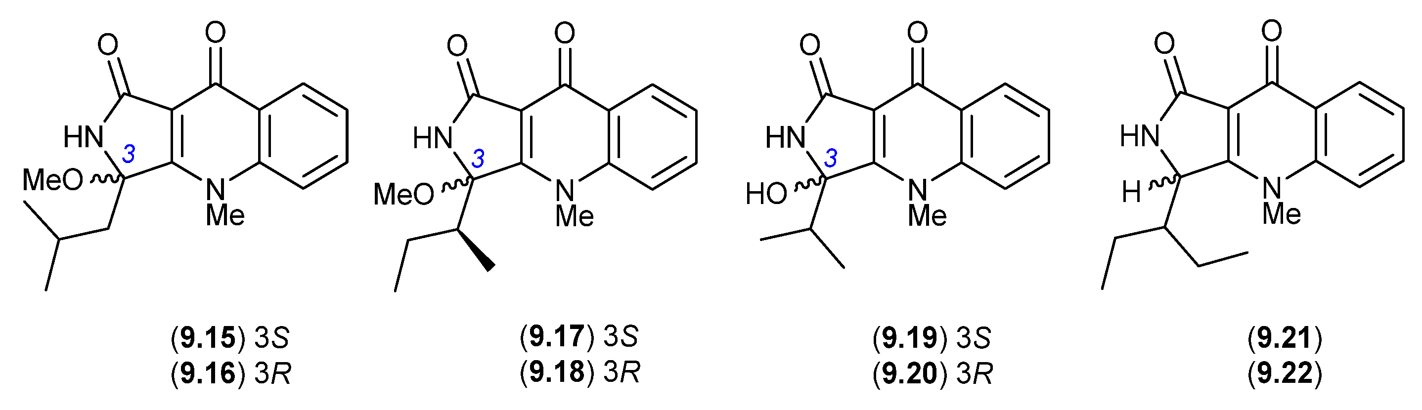 11.7, as they were detected in the crude unfractionated culture extract it was concluded they were natural products—potentially formed in situ by a non-enzymatic Michael addition. More intriguing, while