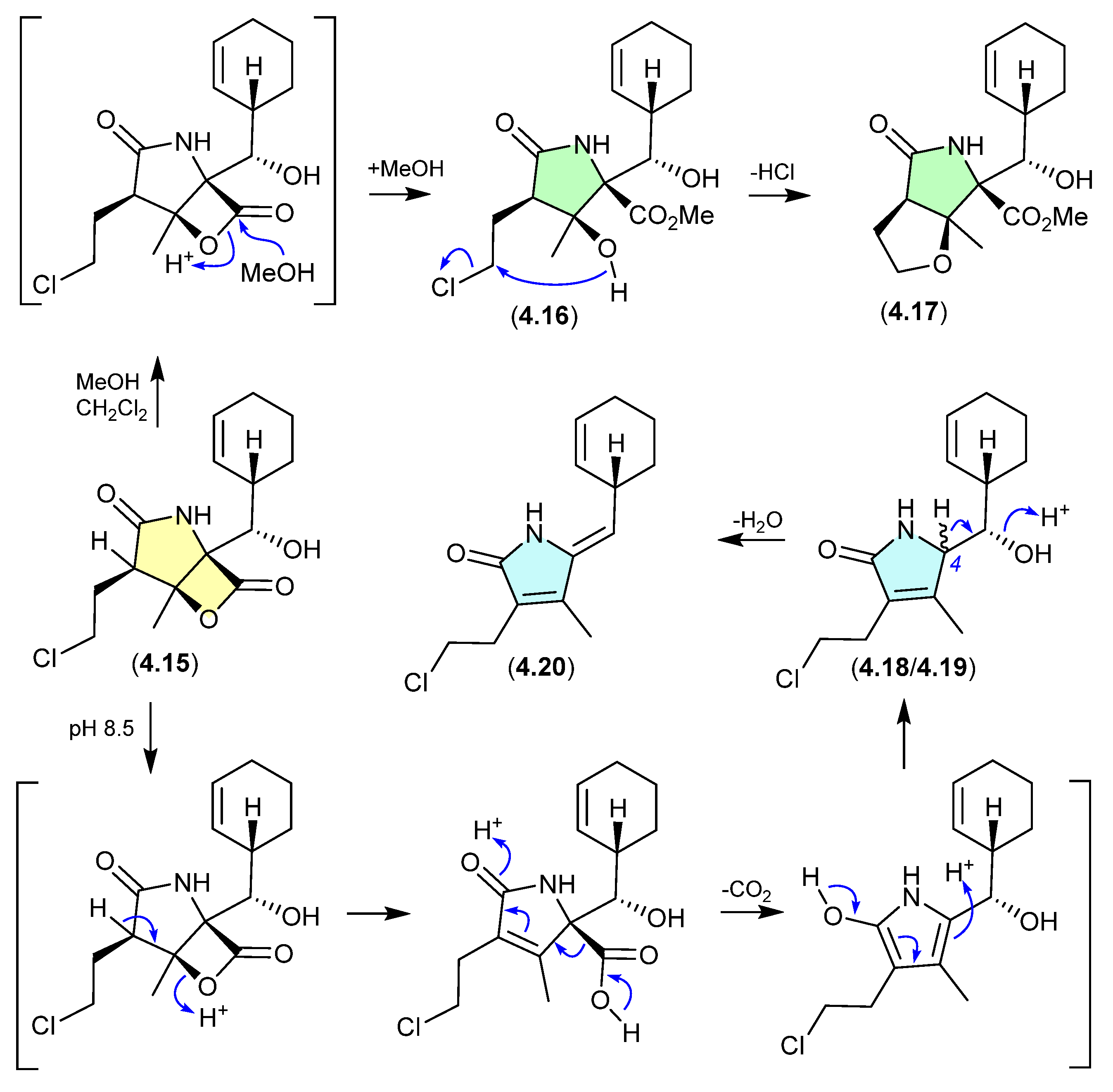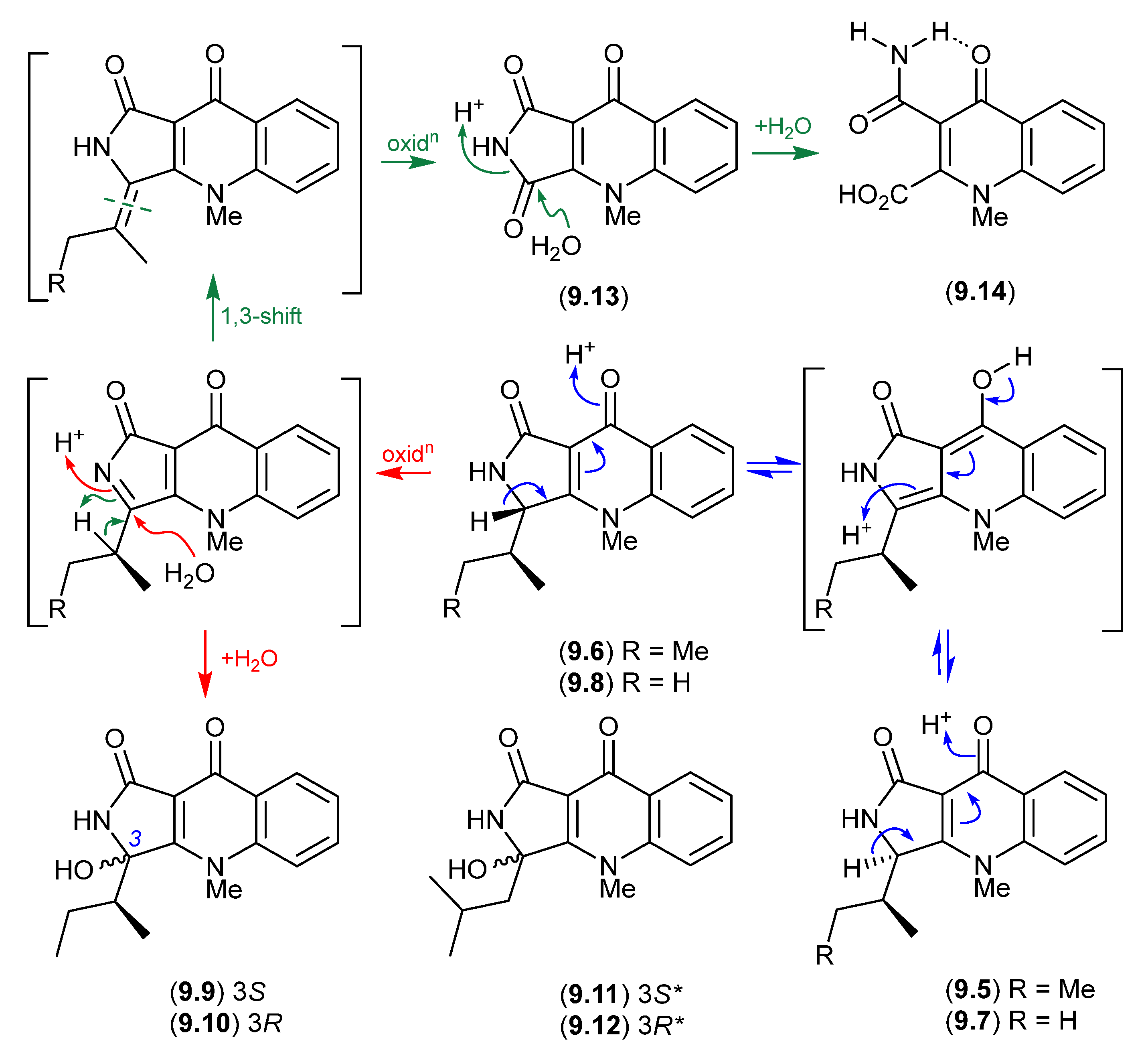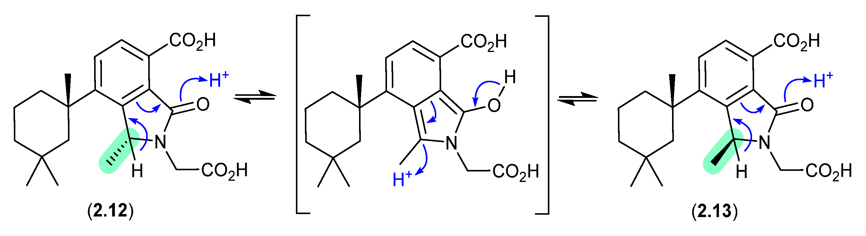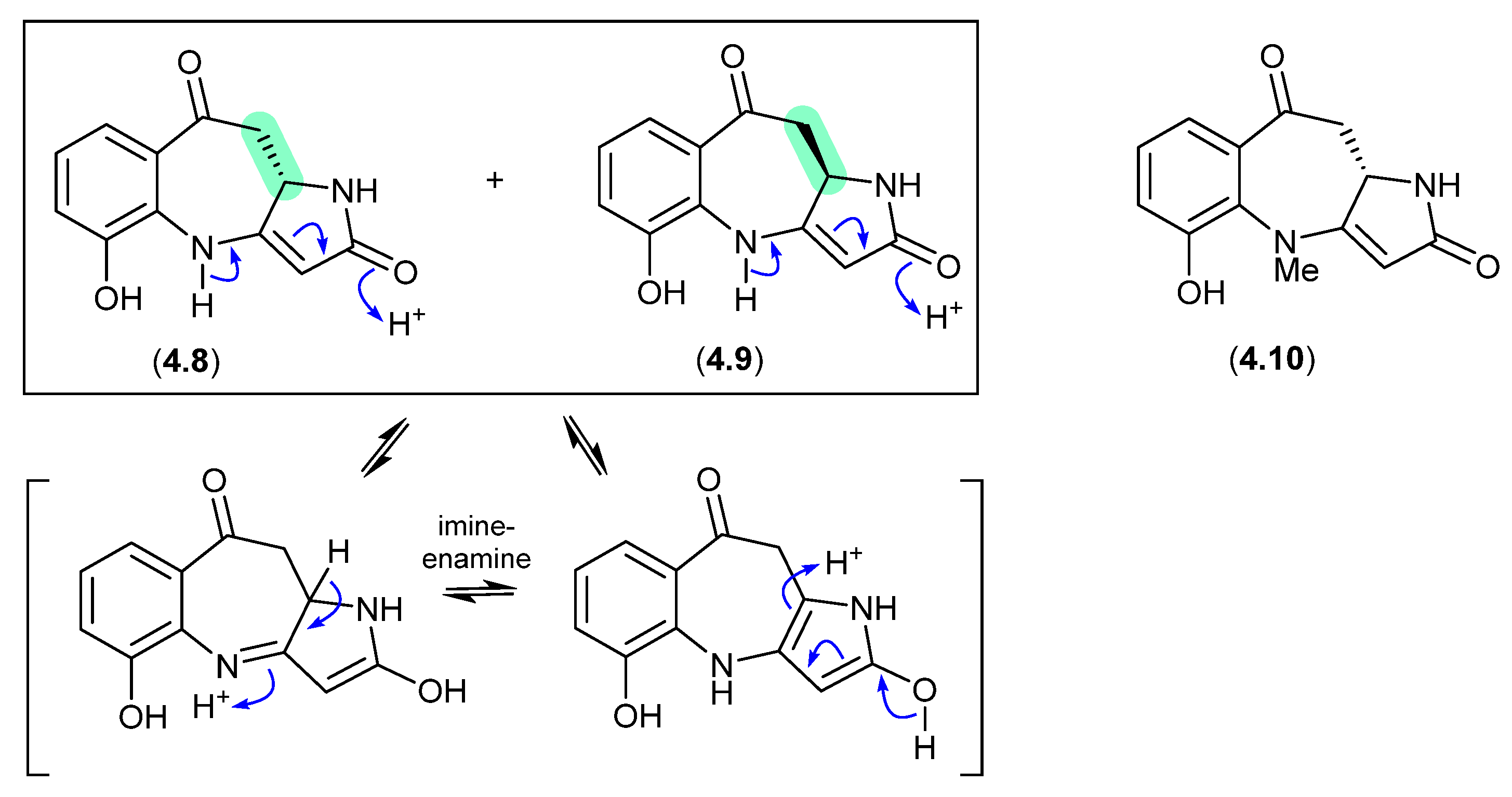 14]. This epimerisation likely proceeds via enolization of the lactam to an achiral pyrrolo intermediate, as supported by partial incorporation of deuterium into the γ-lactam methine when 5% D