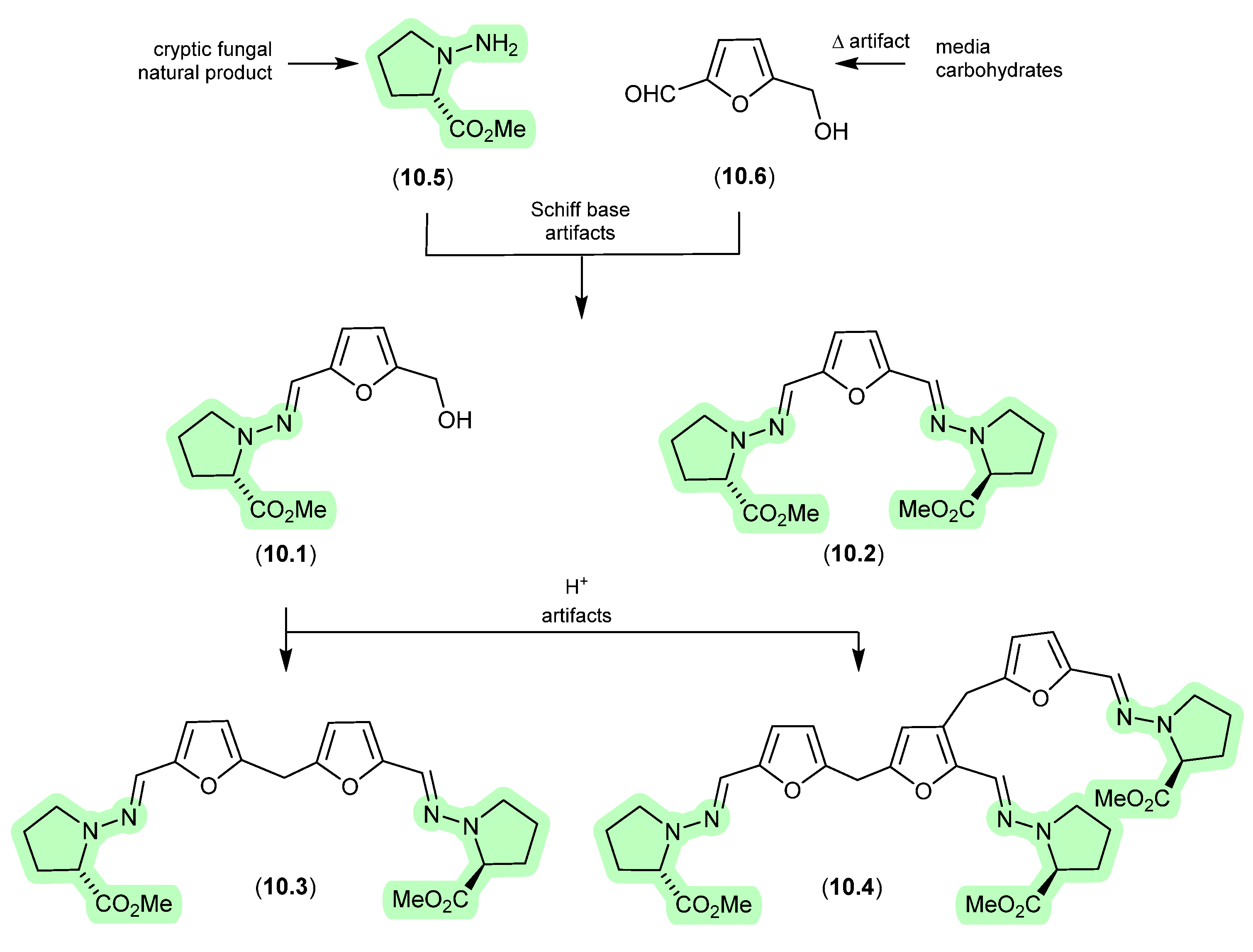 Section 10), such that the natural product remains invisible and only the artifact is detected in the extract and erroneously attributed natural product status.