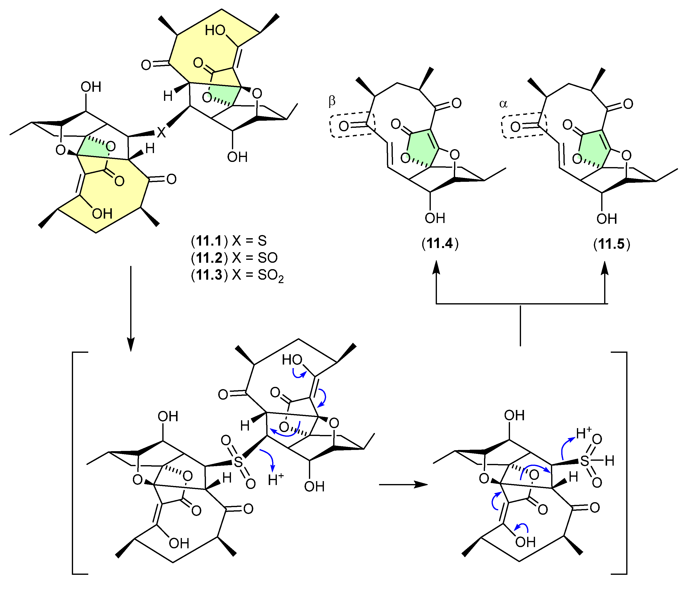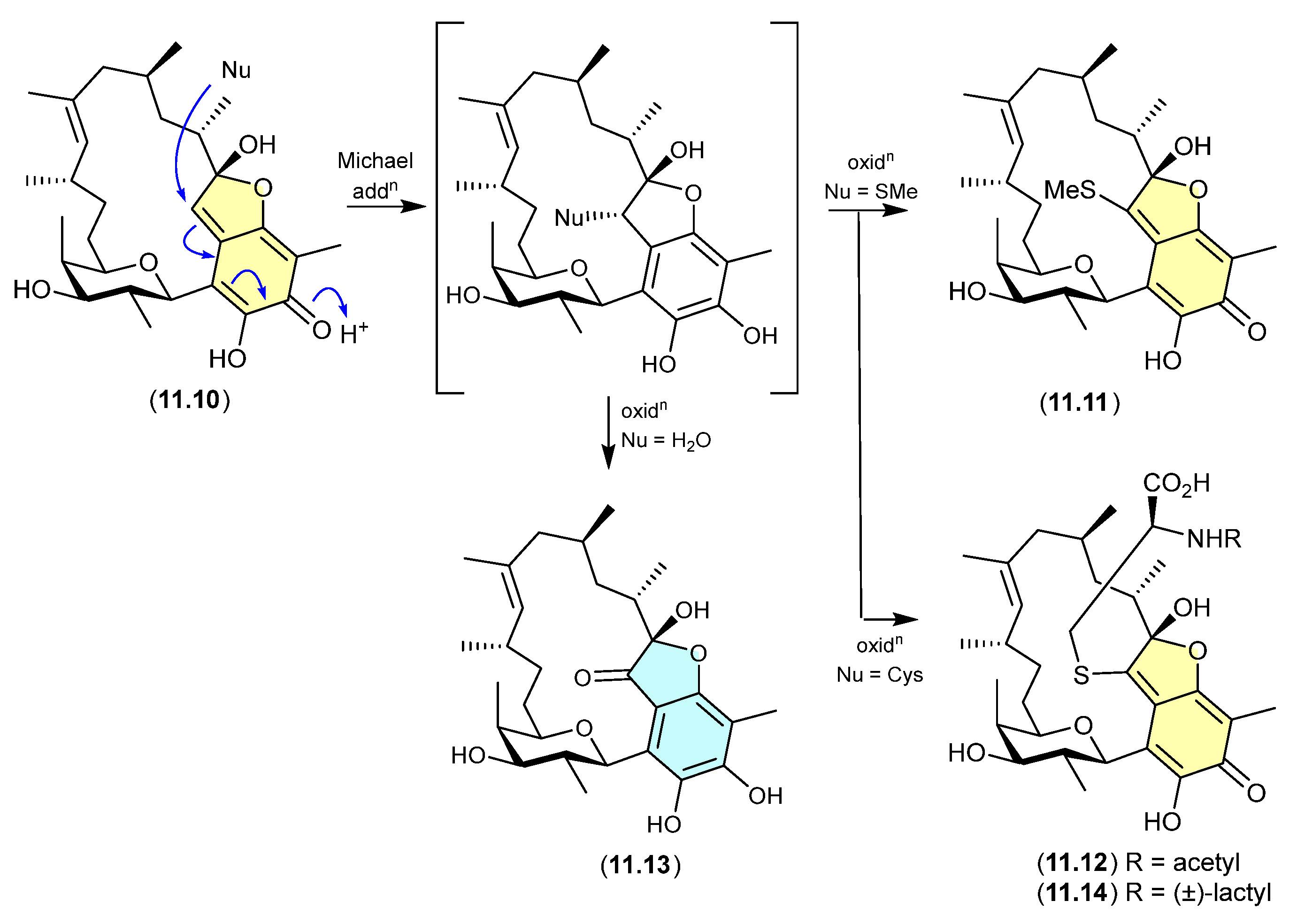 11.14. These likely proceed via Michael additions with subsequent oxidations, and further highlight the challenges associated with acquiring meaningful SAR data on chemically reactive natural products.