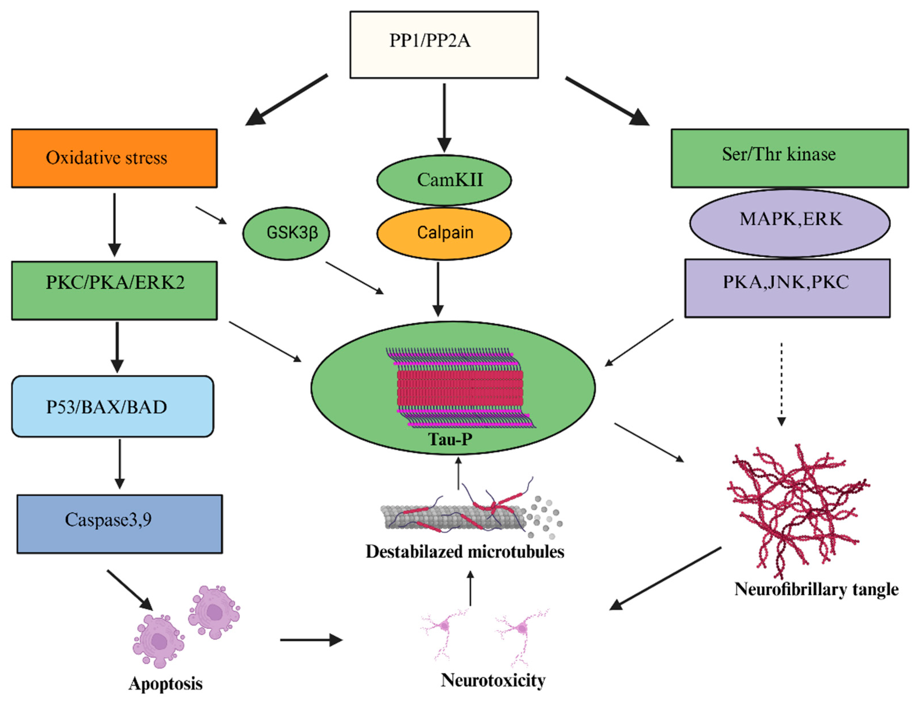 - Kamat, P.K.; Rai, S.; Swarnkar, S.; Shukla, R.; Nath, C. Molecular and Cellular Mechanism of Okadaic Acid (OKA)-Induced Neurotoxicity: A Novel Tool for Alzheimer’s Disease Therapeutic Application. Mol. Neurobiol. 2014, 50, 852–865. [Google Scholar] [CrossRef] [PubMed]