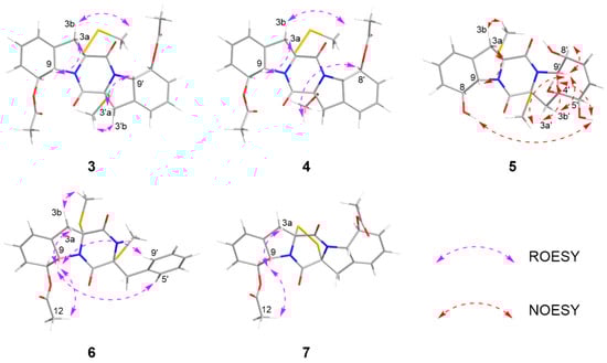 NOESY and ROESY correlations of 3–7.