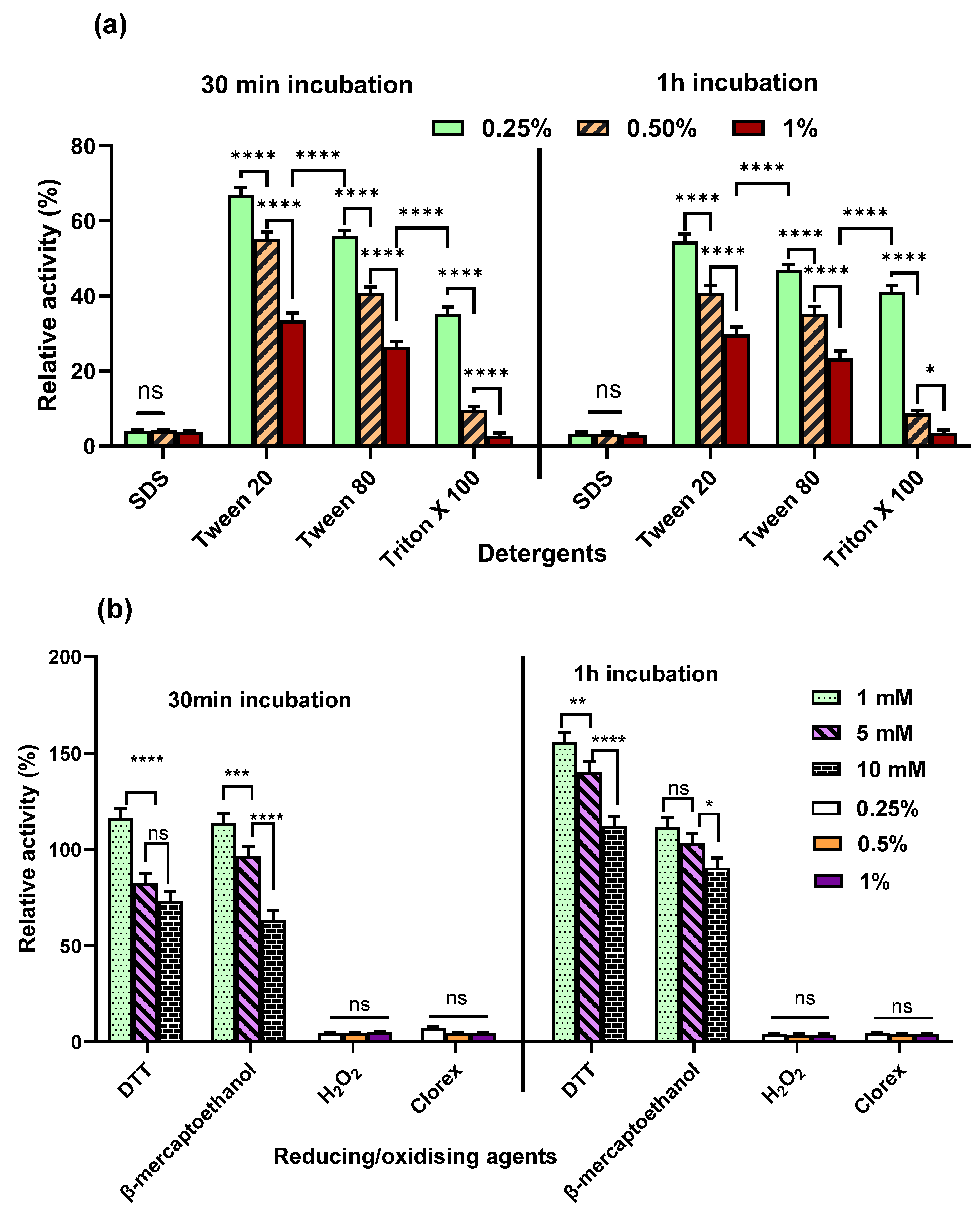 2.5.6. Effect of Reducing Agents and Oxidising Agents on the Activity of α-Amylase