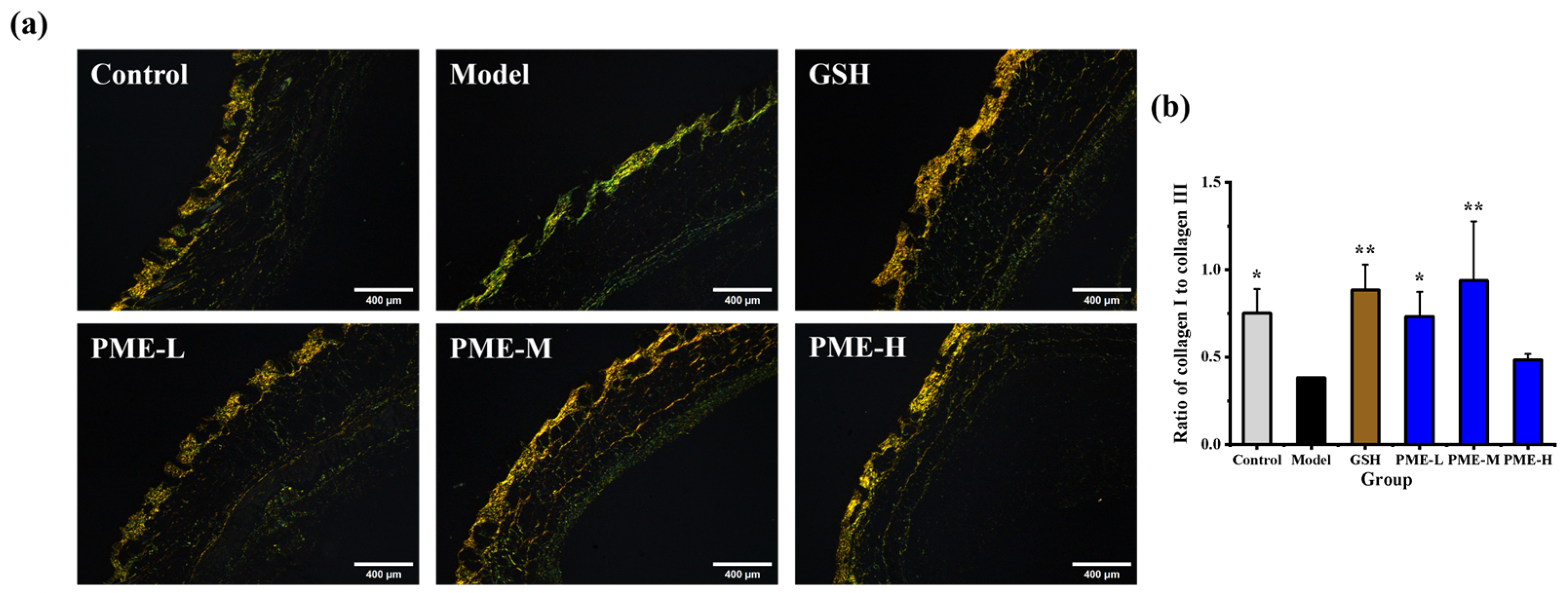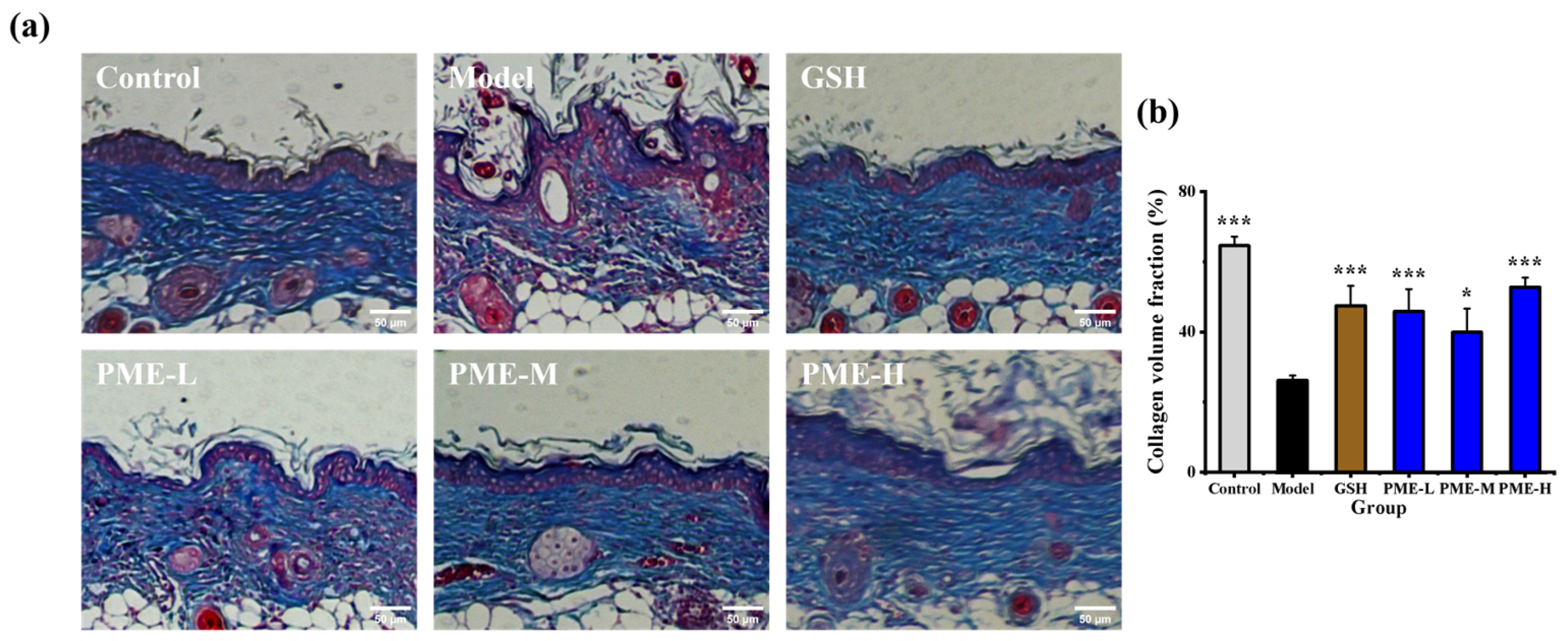 2.5. The Effects of PME on Collagen Fibers in Photoaged Nude Mice