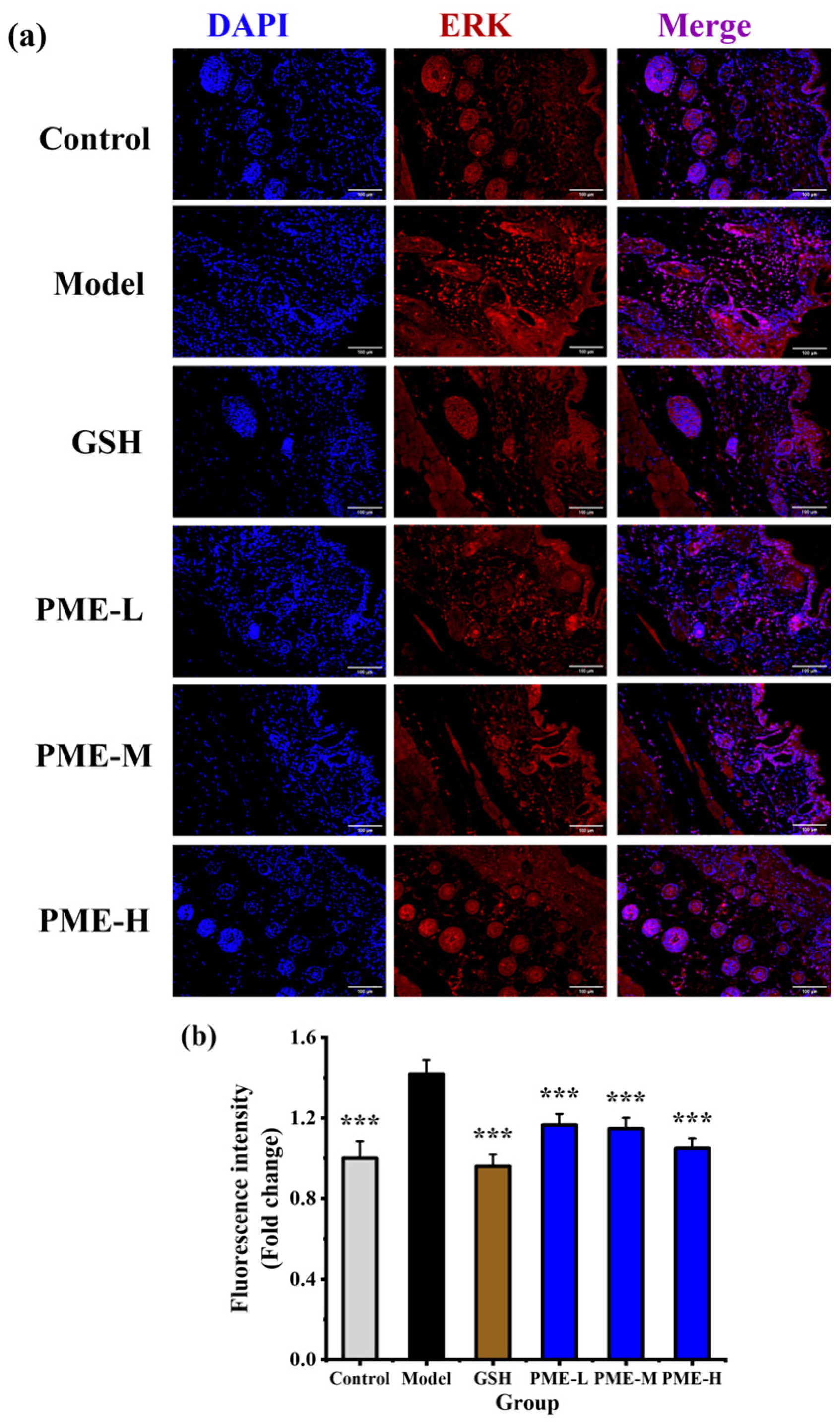2.8. The Effects of PME on the Expression of ERK in Photoaged Nude Mice