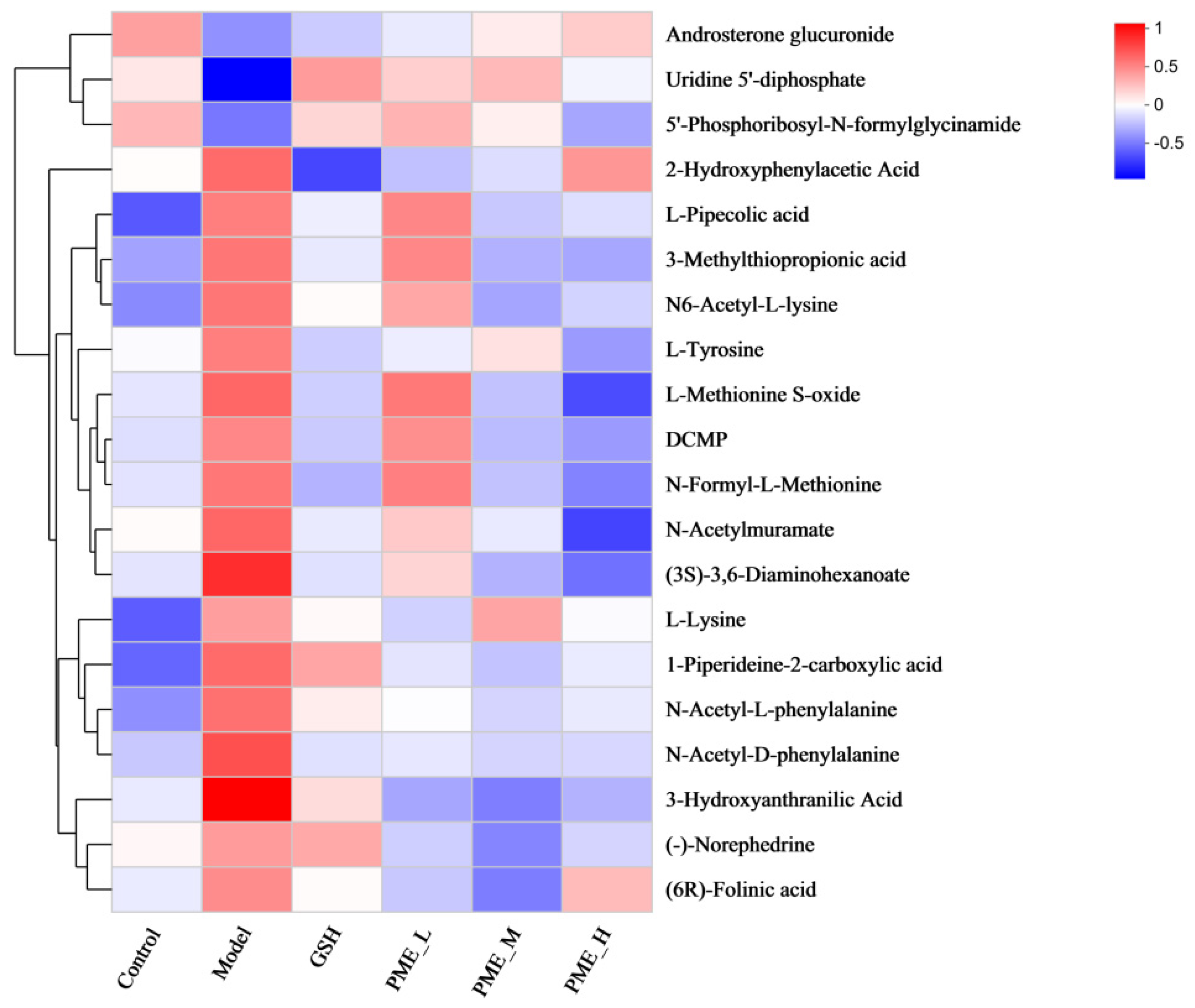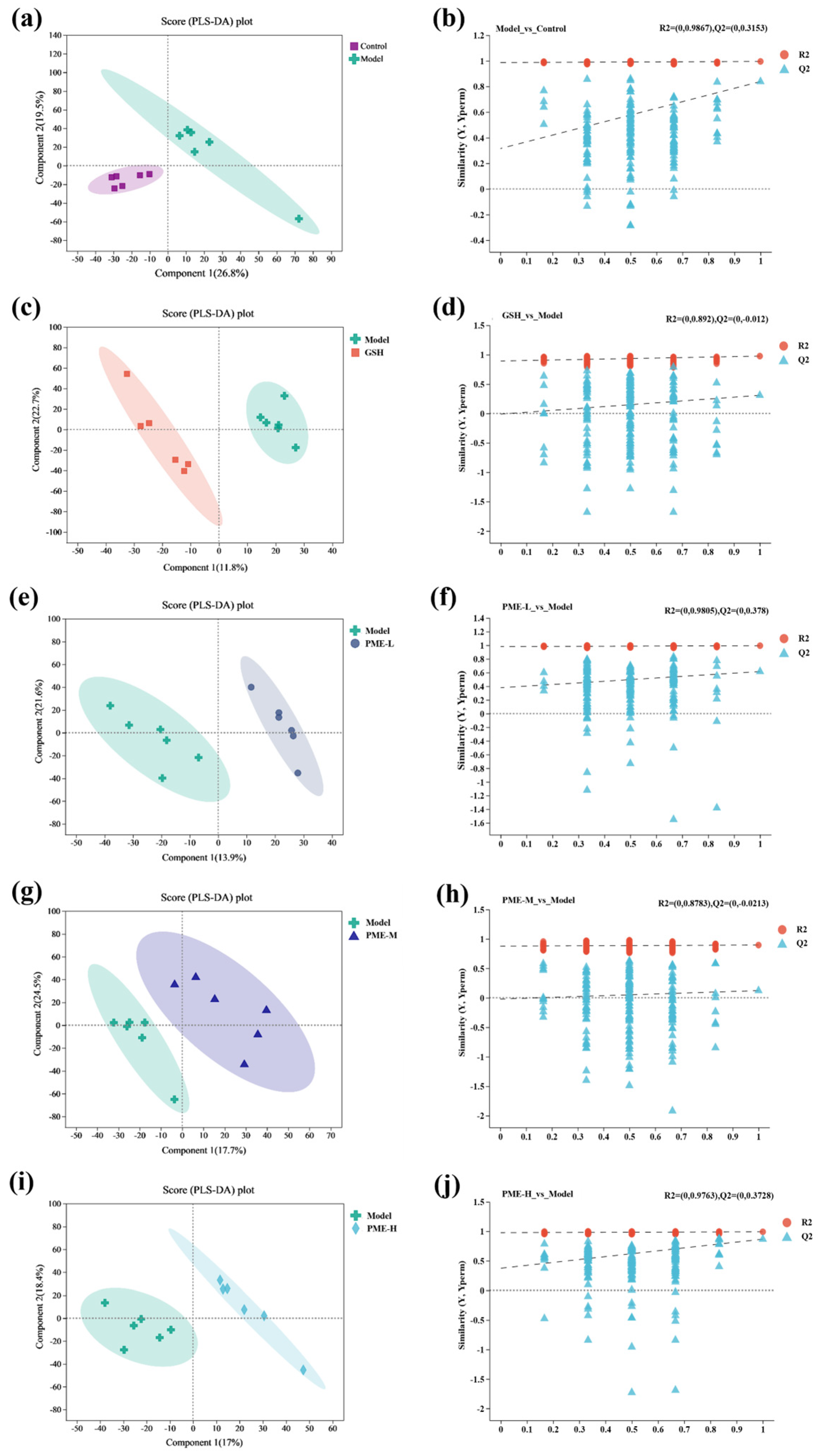 2.9. The Effects of PME on Serum Metabolomics in Photoaged Nude Mice