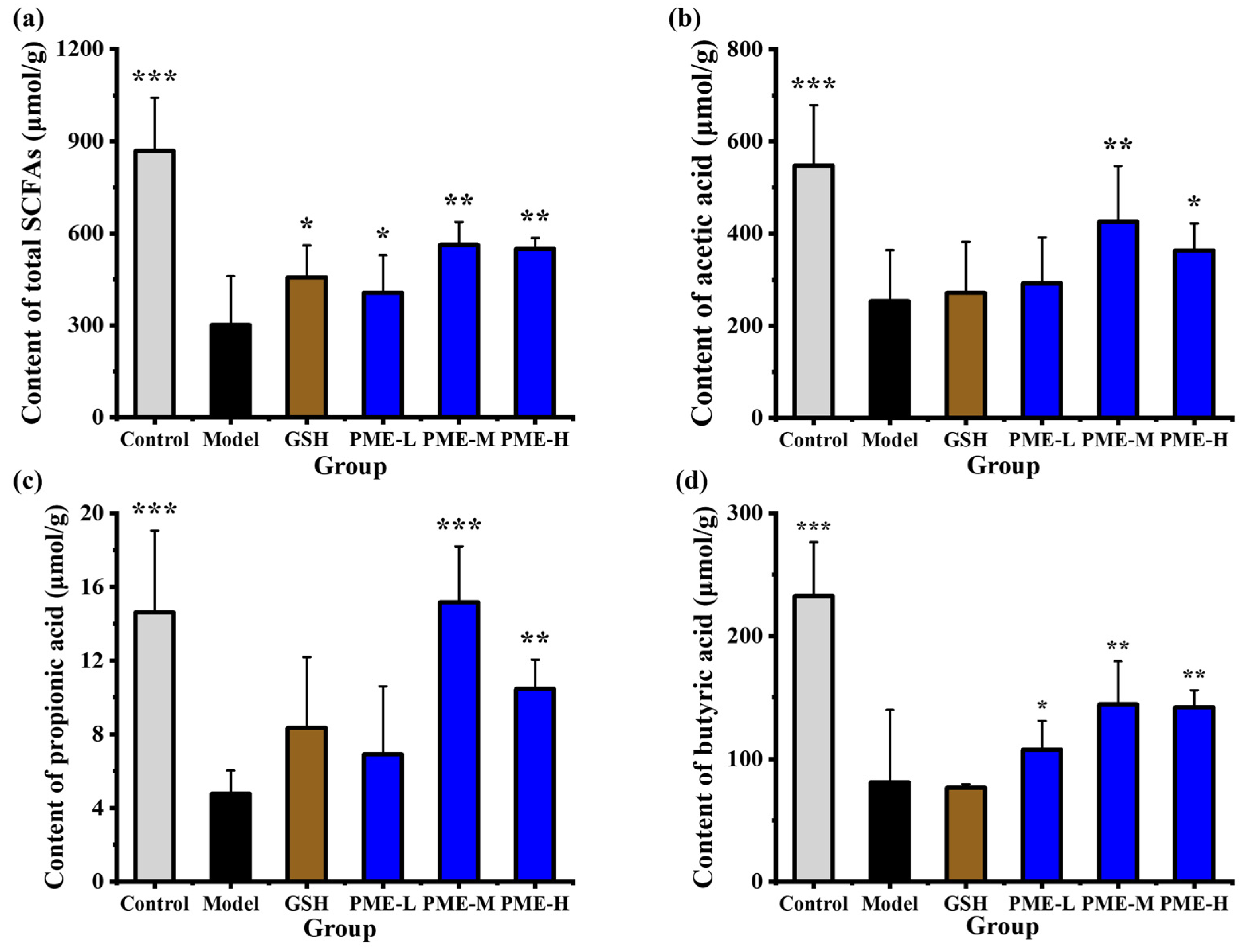 2.10. The Effects of PME on the Contents of SCFAs in Photoaged Nude Mice