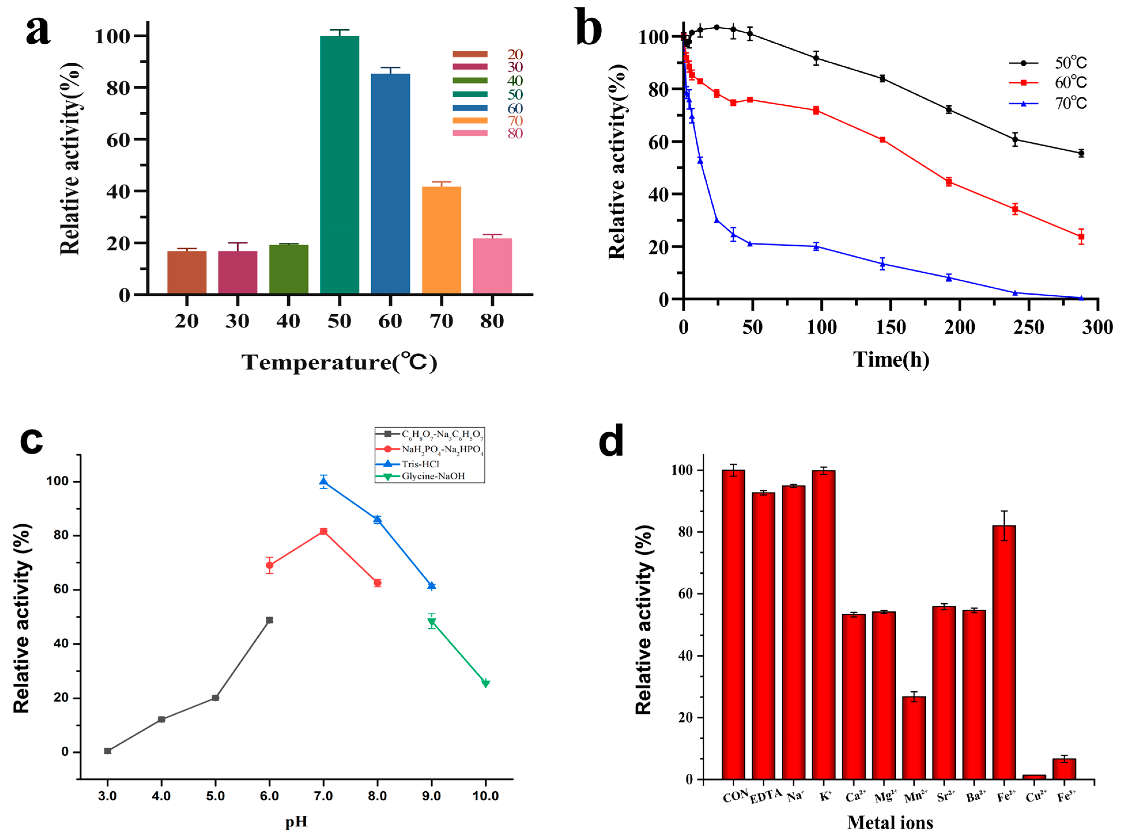 3.6.4. The Effect of Different Metal Ions on the Activity of Recombinant Aga2457