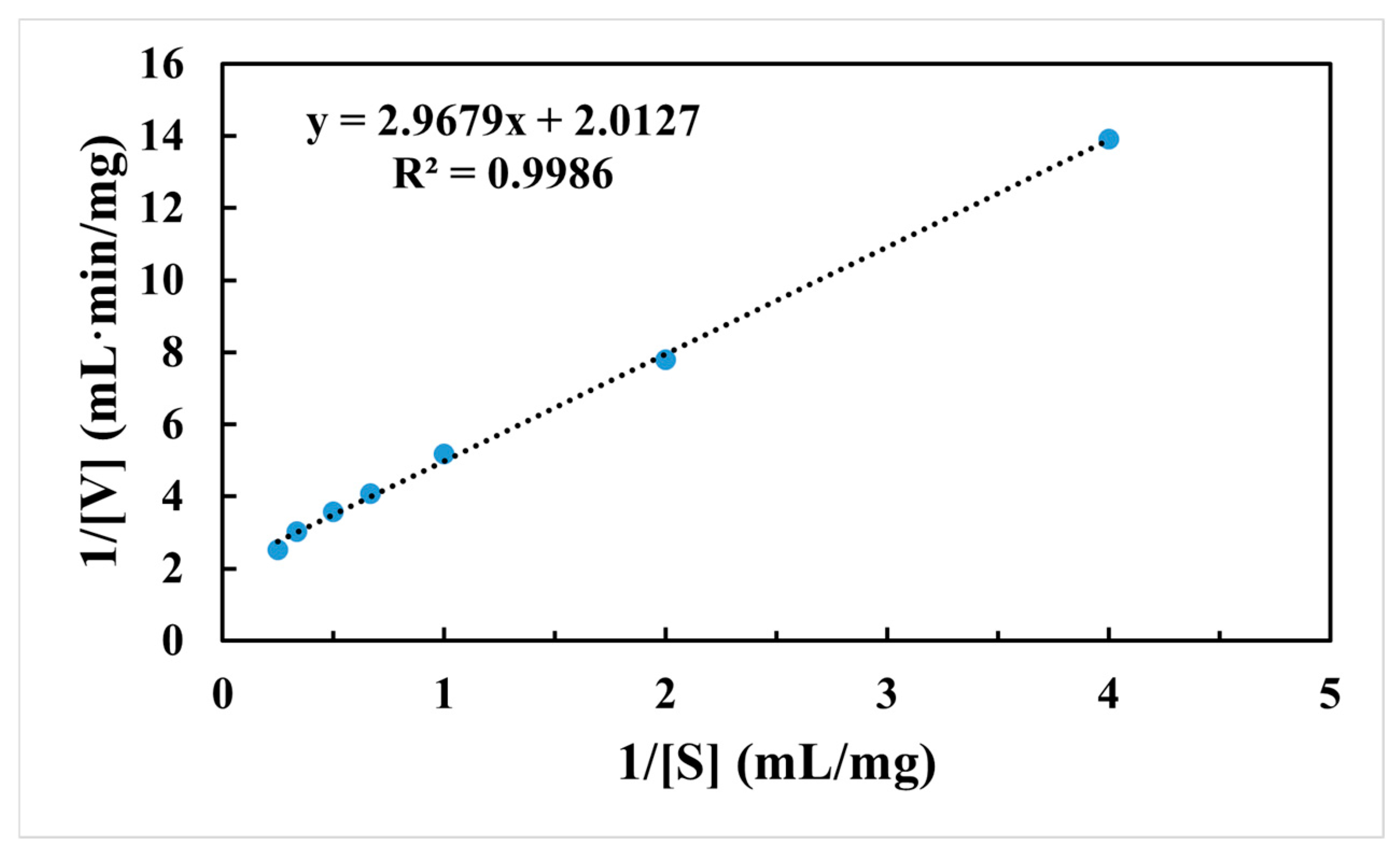 - Morrison, J.F. Lineweaver–Burk Plot. In Encyclopedia of Molecular Biology; John Wiley & Sons, Inc.: Hoboken, NJ, USA, 2002. [Google Scholar]