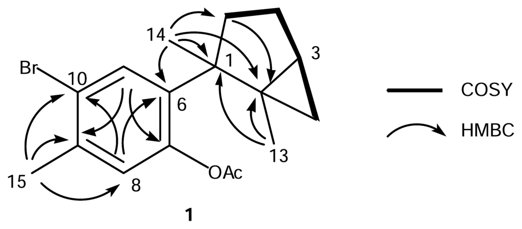 - Schmitz, F. J.; Michaud, D. P.; Schmidt, P. G. Marine Natural Products: Parguerol, Deoxyparguerol, and Isoparguerol. New Brominated Diterpenes with Modified Pimarane Skeletons from the Sea Hare Aplysia dactylomela. J. Am. Chem. Soc 1982, 104, 6415–6423. [Google Scholar]