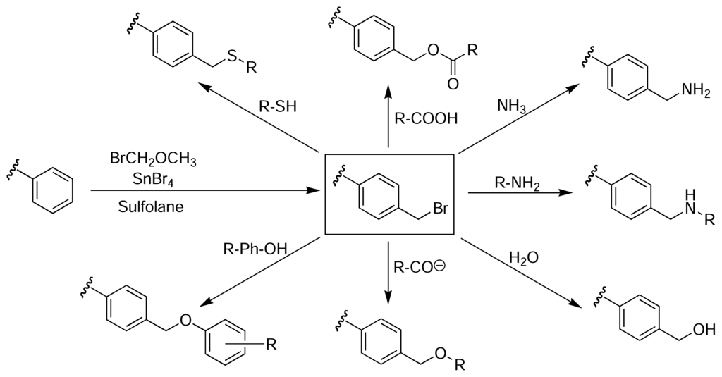 - Delgado, M.; Janda, K. D. Polymeric supports for solid phase organic synthesis. Curr. Org. Chem 2002, 6, 1031–1043. [Google Scholar]