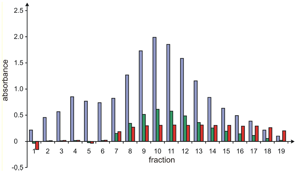 To further reduce the analysis time needed per fraction of the final gel chromatography and to avoid the use of HPLC systems for these experiments, an additional method for the validation of the purity of these samples was developed, by taking advantage of the different UV properties of 1 and 2, which both significantly absorb at 300 nm (Fig. 2, blue bars, corresponding to the overall concentrations of 1plus2), but only 1 is UV active at 430 nm (Fig. 2, green bars, proportional to the concentration of 1, only). Thus, when showing a constant ratio between the measurement of the UV absorption at 300 nm and at 430 nm of a certain fraction (Fig. 2, red bars, from fractions 9 to 17), the sample exclusively contained the more slowly eluting pure sorbicillactone A (1). By applying this method, the time required for analysis of the resolved fractions was drastically reduced to below 1 minute.