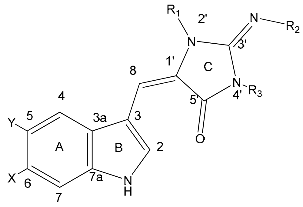 | 18 | 6-bromo-3′-deimino-3′-oxoaplysinopsin | Br | CH3 | CH3 |