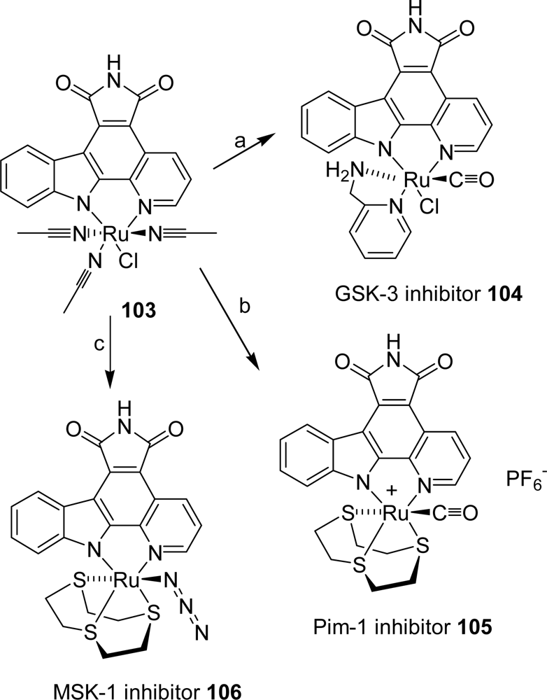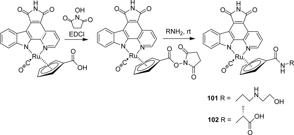 - Bregman, H; Meggers, E. Ruthenium half-sandwich complexes as protein kinase inhibitors: an N-succinimidyl ester for rapid derivatizations of the cyclopentadienyl moiety. Org Lett 2006, 24, 5465–5468. [Google Scholar]