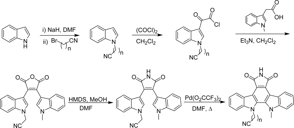 - Roy, S; Eastman, A; Gribble, GW. Synthesis of bisindolylmaleimides related to GF109203x and their efficient conversion to the bioactive indolocarbazoles. Org Biomol Chem 2006, 4, 3228–3234. [Google Scholar]