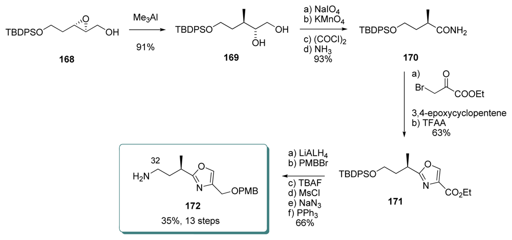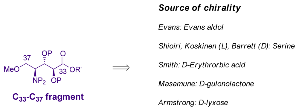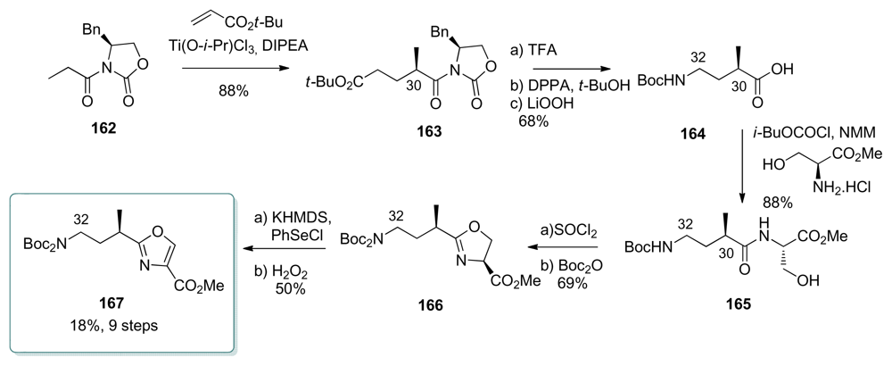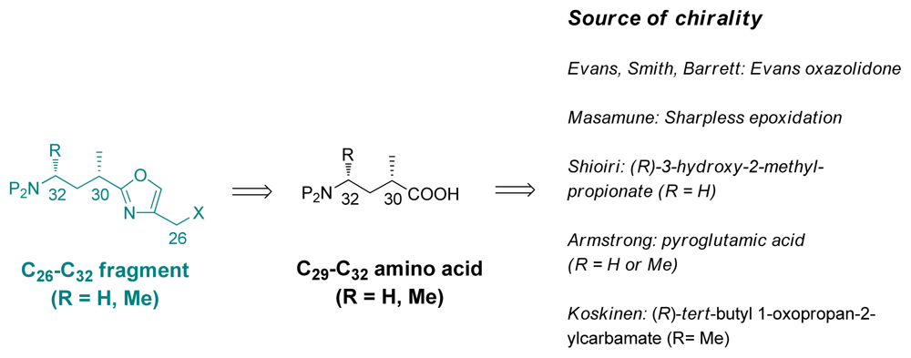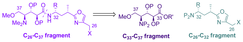 Further, the C26–C37 amino acid oxazole subunit is divided into two subunits: the amino acid C33–C37 subunit and the oxazole C26–C32 subunit (Scheme 2).