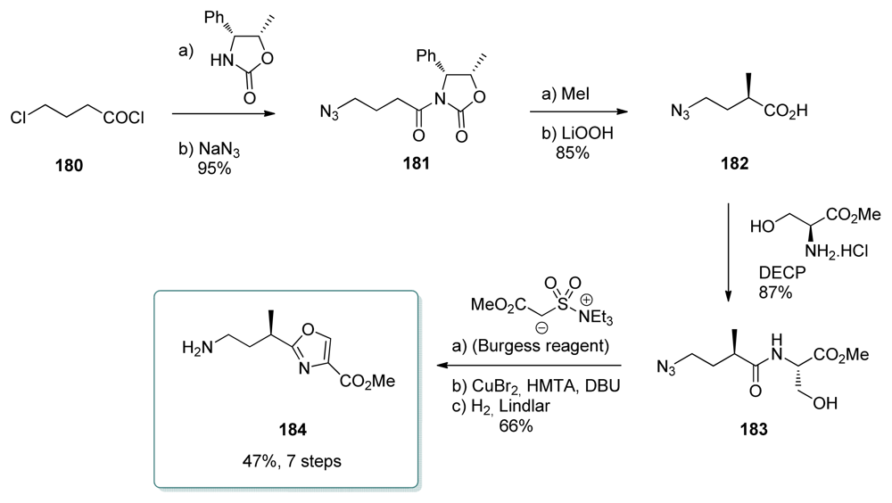 - Pihko, PM; Koskinen, AMP. Synthesis of the C26–32 oxazole fragment of calyculin C: A test case for oxazole syntheses. J Org Chem 1998, 63, 92–98. [Google Scholar]