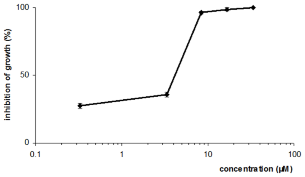 Elatol showed a dose-dependent antileishmanial activity against the promastigote forms. Concentrations of 4.0 ± 0.3 μM and 7.5 ± 0.5 μM of elatol induced 50% and 90% growth inhibition on L. amazonensis, respectively, after 72 h of treatment (Figure 2).