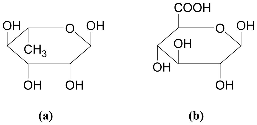 Green seaweed constituents: (a) α-L-rhamnose and (b) glucuronic acid [31].