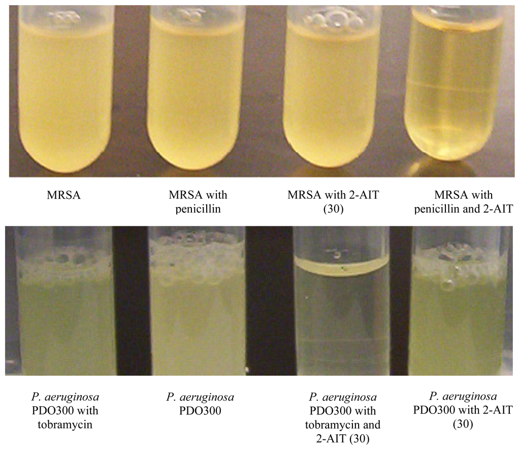 - Rogers, SA; Huigens, RW, III; Cavanagh, J; Melander, C. Synergistic effects between conventional antibiotics and 2-aminoimidazole-derived antibiofilm agents. Antimicrob. Agents Chemother 2010, 54, 2112–2118. [Google Scholar]