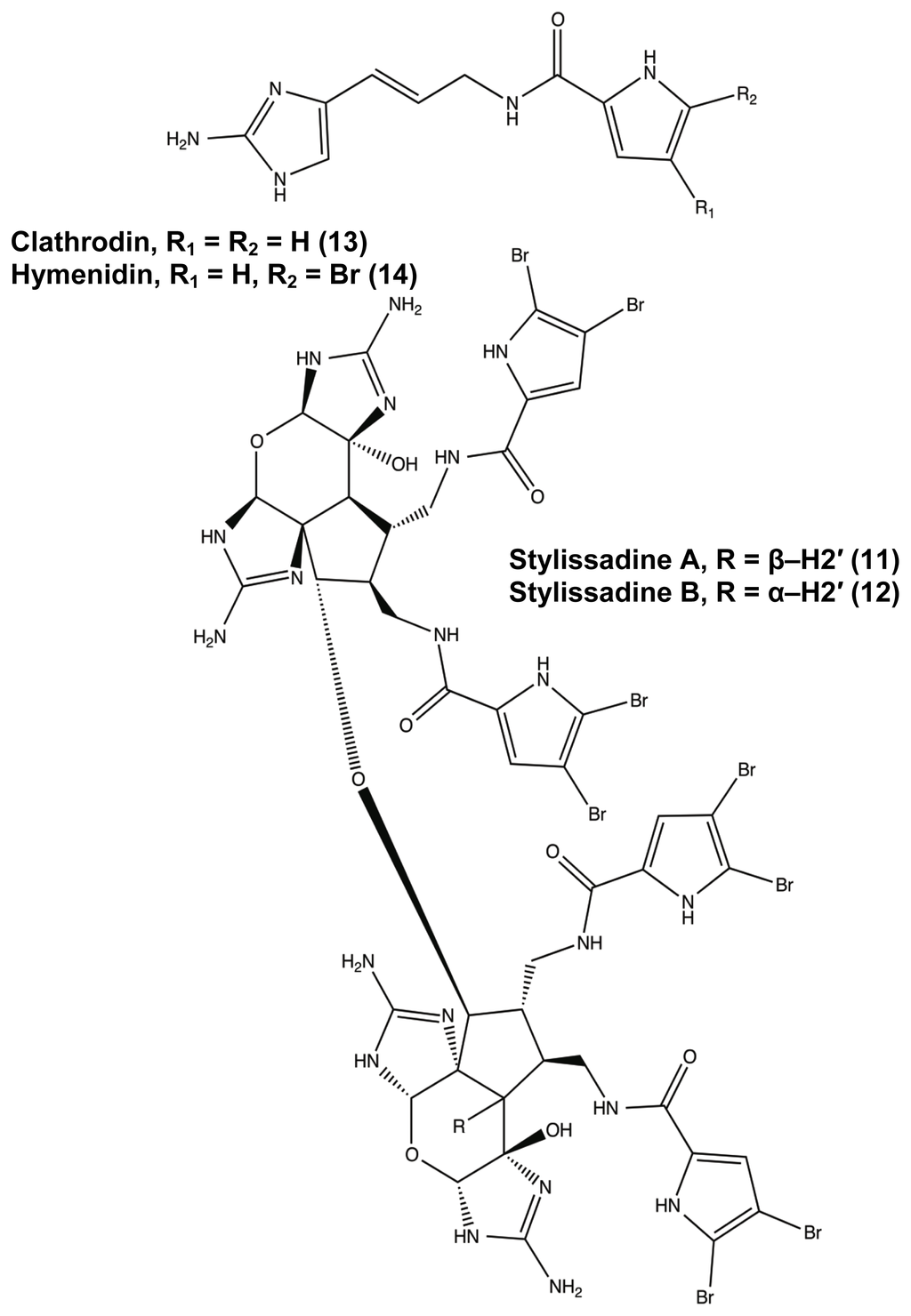 - Hoffmann, H; Lindel, T. Synthesis of the pyrrole-imidazole alkaloids. Synthesis 2003, 2003, 1753–1783. [Google Scholar]