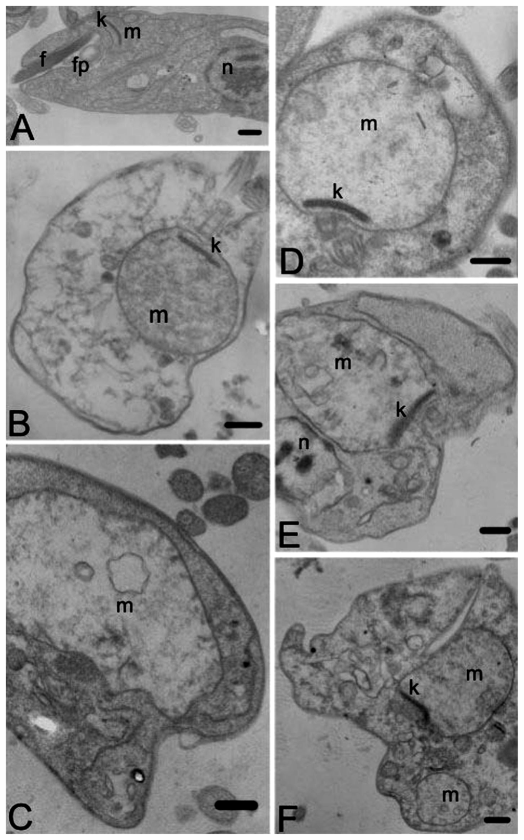 - Santa-Rita, R.M.; Barbosa, H.S.; de Castro, S.L. Ultrastructural analysis of edelfosine-treated trypomastigotes and amastigotes of Trypanosoma cruzi. Parasitol. Res 2006, 100, 187–190. [Google Scholar]