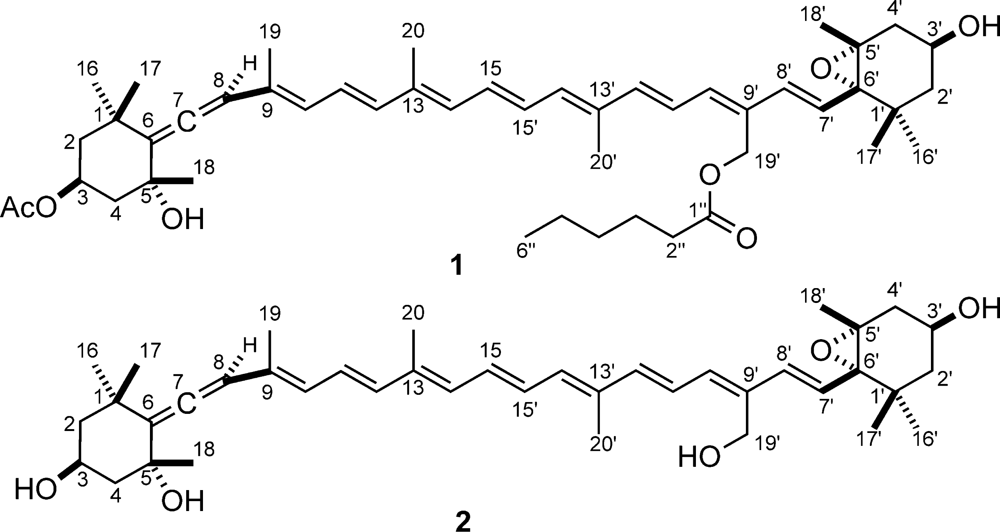 Structures of moraxanthin (1) and vaucheriaxanthin (2).