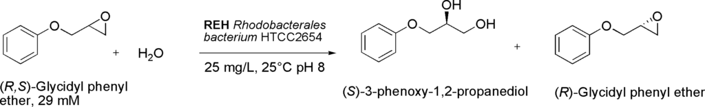 - Woo, J-H; Kang, J-H; Hwang, Y-O; Cho, J-C; Kim, S-J; Kang, SG. Biocatalytic resolution of glycidyl phenyl ether using a novel epoxide hydrolase from a marine bacterium, Rhodobacterales bacterium HTCC2654. J. Biosci. Bioeng 2010, 109, 539–544. [Google Scholar]