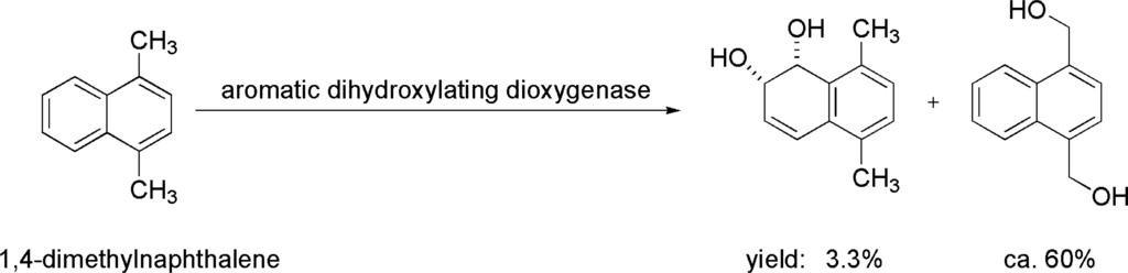 - Shindo, K; Osawa, A; Kasai, Y; Iba, N; Saotome, A; Misawa, N. Hydroxylations of substituted naphthalenes by Escherichia coli expressing aromatic dihydroxylating dioxygenase genes from polycyclic aromatic hydrocarbon-utilizing marine bacteria. J Mol Catal B Enzym 2007, 48, 77–83. [Google Scholar]