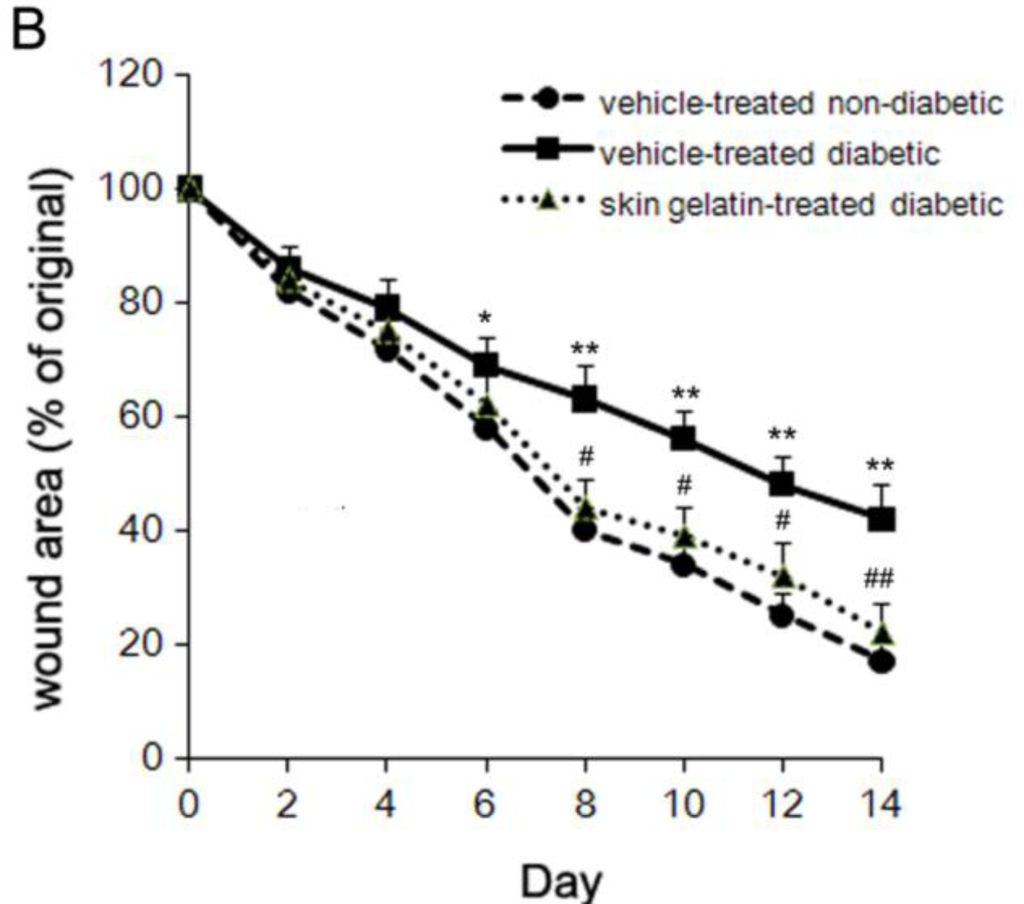 Zhang Z, Zhao M, Wang J, Ding Y, Dai X, Li Y. Oral Administration of Skin Gelatin Isolated from Chum Salmon (Oncorhynchus keta) Enhances Wound Healing in Diabetic Rats. Marine Drugs. 2011; 9(5):696-711. https://doi.org/10.3390/md9050696